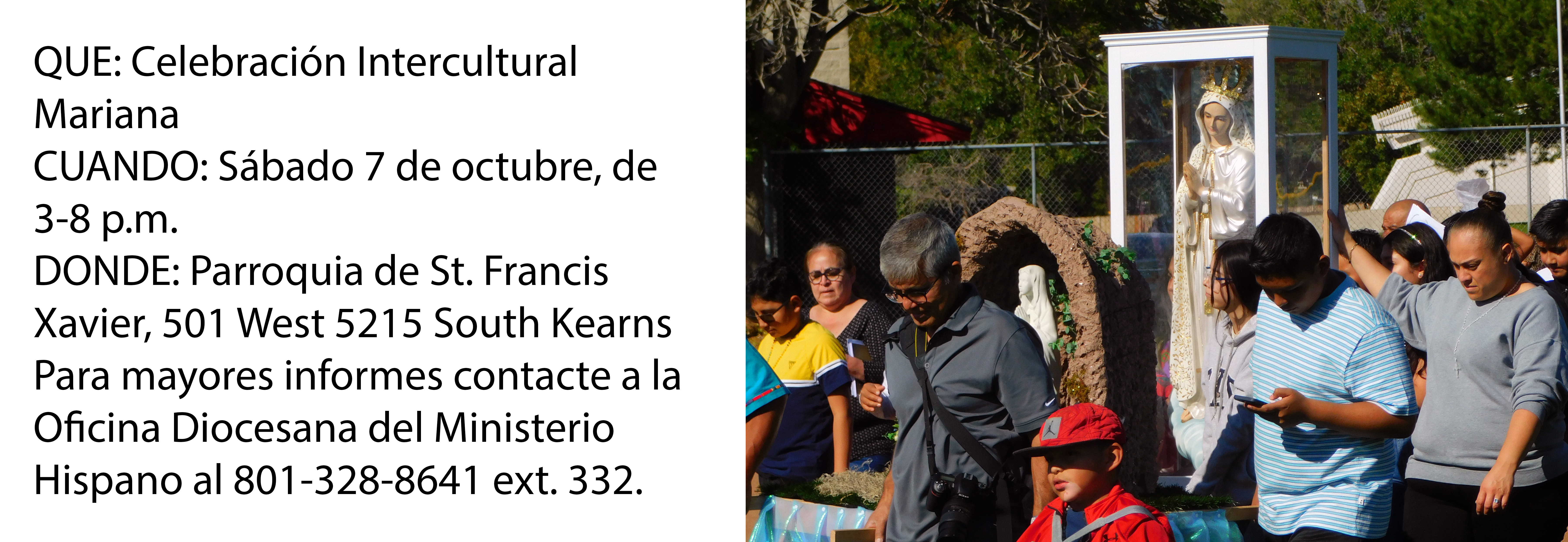 Para mayores informes contacte a la Oficina Diocesana del Ministerio Hispano al 801-328-8641 ext. 332.