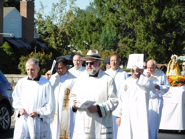 La celebración comenzó con un himno dedicado a Nuestra Señora de Fátima. Los participantes caminaron en una procesión por las calles aledañas a la parroquia, recitando el Rosario en vietnamés, inglés, tongano, portugués, español y tagalo.