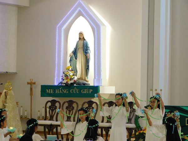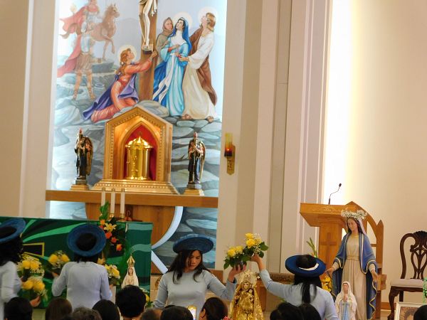 La procesión culminó a las puertas de la Iglesia. Dentro de la Misa las personas colocaron las imágenes en mesas y recitaron el Capítulo de la Divina Misericordia. Después miembros de la comunidad vietnamita ofrecieron unos bailables.