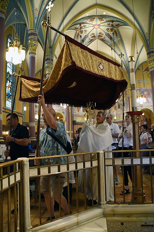 SALT LAKE CITY — El Peregrinaje Eucarístico Nacional, el cual comenzó el 17 de mayo, llegó a Utah el 31 de mayo por Idaho para inmediatamente embarcarse en una procesión de dos millas a través de Hyde Park. La procesión culminó en la parroquia de Saint Thomas Aquinas, la cual realizó una Adoración nocturna del Santísimo Sacramento (vea esta historia en la publicación el 14 de junio).