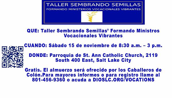 El evento de un día de duración se titula ‘Sembrando semillas’ y será realizado en la parroquia de Santa Ana en Salt Lake City siendo ofrecido simultáneamente en inglés y en español por presentadores del ‘Vocation Ministry’