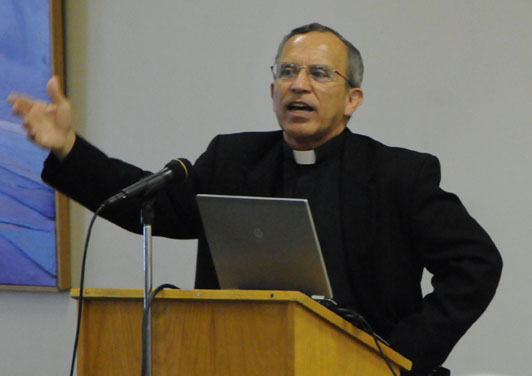 SALT LAKE CITY — El Reverendísimo John C. Wester, Obispo de Salt Lake City dijo a los sacerdotes diocesanos reunidos durante la convocación de primavera realizada el 10 de mayo que la correcta enseñanza de las predicaciones de la I-glesia Católica acerca de la Justicia Social son un reto, ya que esta debe de ser vista como una parte integral de la liturgia y no como una declaración política. "Estos son dos aspectos de nuestro ministerio que realmente van de la mano. Este es un tema importante sobre el que debemos pensar". Con este fin el tema de la convocación fue "La enseñanza social católica y el ministerio de la predicación". El orados principal fue el Padre David García, quien ha sido sacerdote por 37 años en la Arquidiócesis de San Antonio en Texas y funge como asesor del alcance clérigo de Catholic Relief Services. Catholic Relief Services es la agencia humanitaria internacional de la Confe-rencia de obispos Católicos de los Estados Unidos. Trabaja bajo el espíritu de la enseñanza social católica asistiendo a los menos afortunados en más de 100 países en los cinco continentes. El Obispo Wester es miembro del Comité de Directores de CRS. El solidarizarnos con los menos afortunados "es básicamente nuestra función como sacerdotes", dijo el Padre García, enfatizando que el Papa Benedicto XVI es un Papa que enfatiza la caridad como un aspecto integral del catolicismo. García dijo que el Papa Benedicto ha escrito dos encíclicas acerca de la justicia social, enfatizando la amabilidad, el compromiso generoso dentro de la justicia y la paz. El principio fundamental de la enseñanza social católica es que se deben considerar primero la vida y la dignidad de las personas. También existen derechos humanos universales: Cada ser humano tiene el derecho de comida, vestido, techo, cuidados de salud, educación, seguridad de trabajo servicios sociales y li-bertad religiosa. García dijo que cuando predicamos justicia social, es importante que el sacerdote que de cuenta de que "no es solo su ‘cosa’, esta es la enseñanza de la Iglesia". El darse cuenta que los feligreses tal vez tengan dificultades con las homilías acerca de la enseñanza social. El Padre García dijo que el predicar no es forzar las decisiones en las personas. Es acerca de generar entendimiento y de invitar a que las personas descubran el significado del reino de Dios. "Una buena homilía, cuando está terminada, cuando hablamos de nuestra iglesia, no es’ Oh Padre, esas palabras fue-ron tan hermosas, muchas gracias", dijo García. "Es bonito escuchar que alguien lo dice, pero lo que realmente quiero escuchar…es ¿Qué puedo haces?, ¿Qué es lo que debo de hacer? Esta reacción, es el verdadero resultado de que la homilía tocó nuestros corazones. El Padre Louis Anderson, sacerdote retirado de la Diócesis de Grand Rapids, Michigan, y Global Fellow en CRS desde el 2004, también fue un orador durante la convocación. Como Global Fellow se ha dedicado a predicar la justicia social en varias parroquias. Cuando se retiró, "Me dije a mi mismo, ‘No creo que nosotros los sacerdotes nunca terminamos de ser sacerdotes, y a pesar de que ya no estoy en la parroquia…todavía tenemos un ministerio que cumplir: proclamar la Palabra, guiando a las personas , enseñando a las personas’, dijo el Padre Anderson. " Nuestro papel es permitirles ser los cristianos que son llamados a ser y nosotros debemos servir a la Iglesia estimulando ese tipo de conciencia".