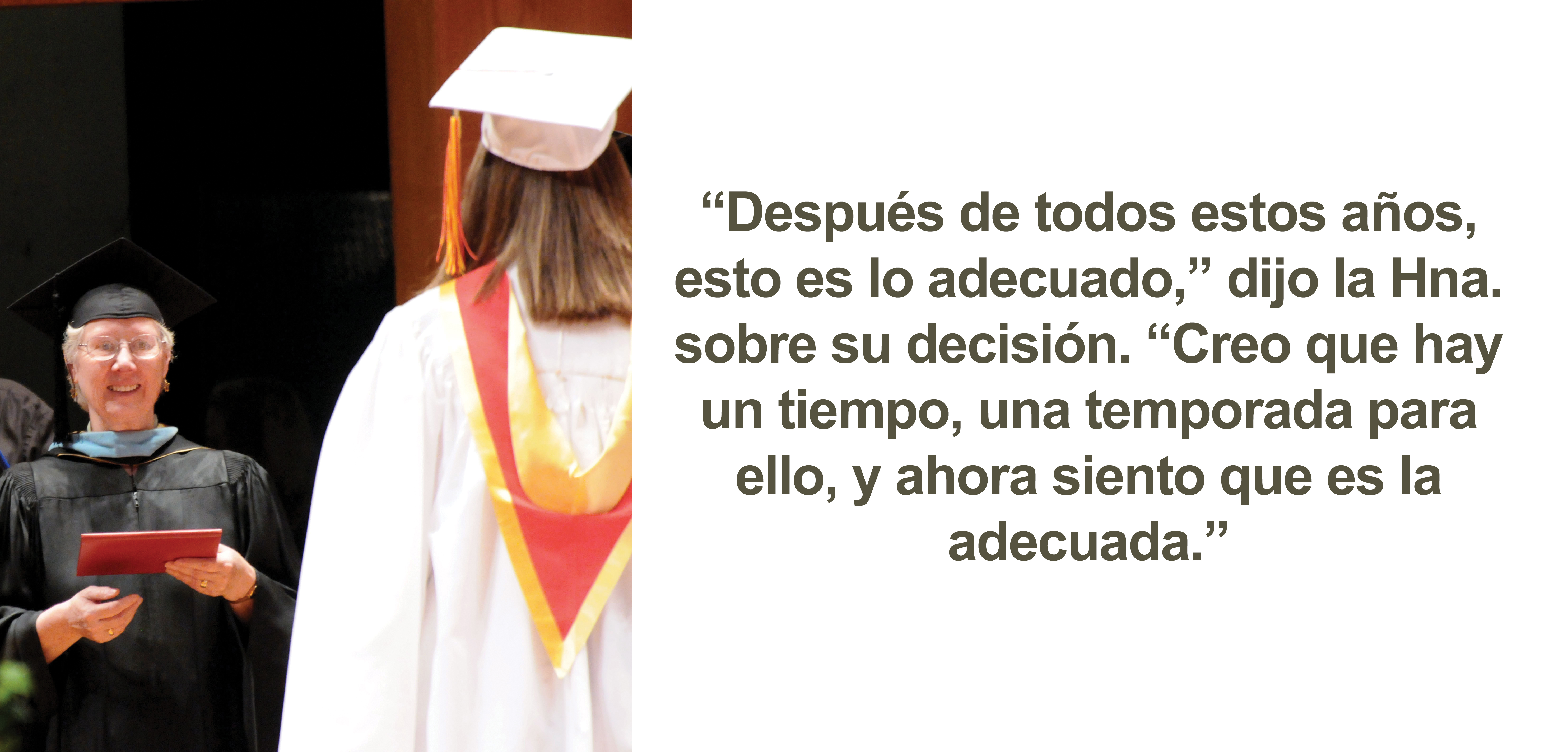 “Después de todos estos años, esto es lo adecuado,” dijo la Hna. sobre su decisión. “Creo que hay un tiempo, una temporada para ello, y ahora siento que es la adecuada.”