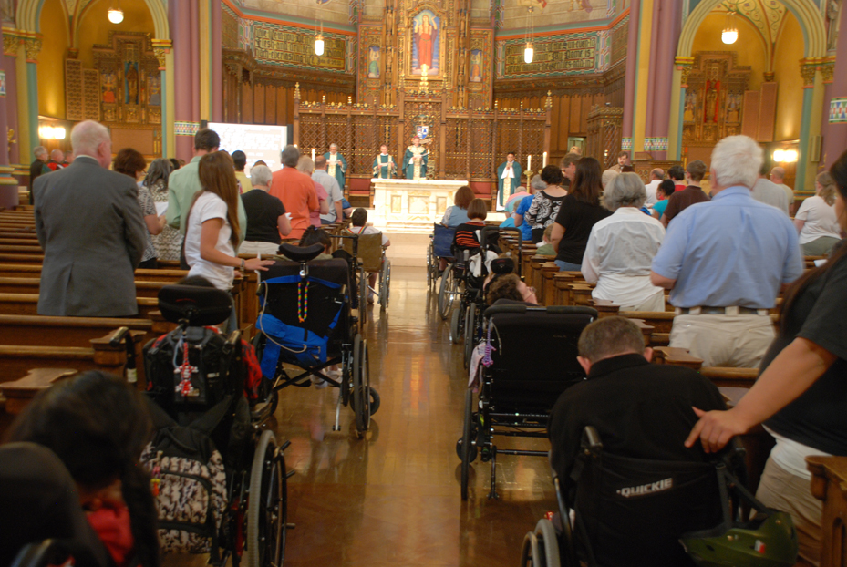 "Se requerían cosas como puertas lo suficientemente anchas para el acceso de sillas de ruedas, baños accesibles y rampas en la plataforma del altar. Contamos con asientos al frente de la capilla en donde las bancas fueron removidas para que las sillas de ruedas pudieran colocarse, a las caminadoras o aparatos de ayuda. Las otras bancas son lo suficientemente anchas dando la oportunidad de que las personas con caminadoras las puedan colocar en ellas.