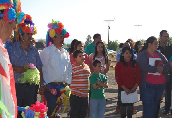 BEAVER – La Misión de Nuestra Señora DE La Luz en Beaver celebró su aniversario el 14 de mayo a lo grande. Feligreses se reunieron para esta tan especial celebración la cual comenzó con la danza de los Matachines, grupo de danzantes indígenas cuyo danza tiene un propósito religioso, el venerar a María en una de sus representaciones tales como la Virgen de Guadalupe o la Virgen de la Inmaculada Concepción o en ese caso Nuestra Señora de la Luz. La Danza de los Matachines también es bailada para celebrar a Cristo y a la Sagrada Trinidad. Durante el evento del aniversario ce-lebrado en la Misión docenas de feligreses se reunieron en frente de la imagen de la Virgen la cual fue colocada afuera de la Misión. Después de que los Matachines ejecutaron sus danzas, una pequeña procesión comenzó. "Estamos todos aquí: adultos, niños, reunidos para celebrar y por eso vamos a cantarle las Mañanitas", dijo el Padre Fidel Barrera, Vicario Parroquial de la parroquia de Cristo Rey en Cedar City (esta parroquia tiene a su cargo la Misión en Beaver), mientras afinaba su guitarra para dar los primeros acordes. Entre los participantes en el festejo se encontraban los integrantes del coro de la parroquia de St. Bridget en Mildford. "Venir a celebrar esta ocasión es importante ya que como hispanos necesitamos enseñar nuestra cultura a nuestros hijos", dijeron Brenda y Adrián Moreno, feligreses de St. Bridget y parte del coro de la misma iglesia. "Es importante para que conozcan nuestras tradiciones y así no pierdan nuestra cultura", agregó Gladys López, quien también es feligrés y parte del coro de St. Bridget en Mildford. "Cuando llegué aquí [hace 22 años] no había nada", recordó Susana Scheuer, una de las fundadoras de la Mision de Nuestra Señora de la Luz. "Inclusive comenzé a asistir a la iglesia LDS para ver como era… entonces escuché que los católicos se estaban reuniendo en Mildford, y comenzé a ir para alla. Las misas las hacíamos en las cocheras de las casas". Conforme más y más católicos se comenzaron a reunir en Beaver, finalmente lograron que se comprara una pequeña casa en la cual comenzarona ce-lebrar misa los fines de semana. "Comenzamos a pensar a cerca de te-ner nuestro propio lugar para que las personas pudieran venir", recordó con nostalgia Scheuer. "Este día es muy especial, es una ocasión muy especial…ya tres años de esta misión. Hemos progresdo mucho". Después de la procesión en la cual la imagen fue transportada al interior por los Matachines, las personas se reunieron para la celebración de la Santa Misa. El Padre Barrera se dirigió a todos tanto en inglés como en español. Una deliciosa cena fue servida para todos los allí presentes. "Estoy muy agradecida con Dios por todo lo que nos ha dado", dijo Scheuer muy contenta. "Este es un sueño que se ha hecho realidad con el trabajo de muchas personas….Ahora nuestro sueño es tener una iglesia". Vea más fotografías en Facebook.