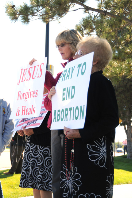 Durante la cadena viviente que se formó en Sandy las personas mostraban pancartas pro vida mientas rezaban el rosario.