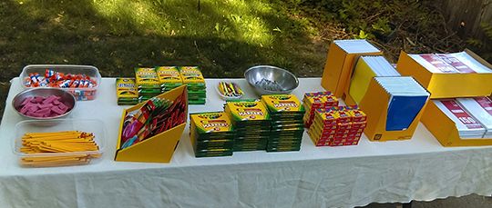 The Ladies of Charity included school supplies in the food boxes they distributed in August.