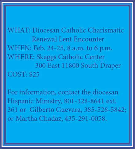 DRAPER — This year the diocesan Catholic Charismatic Renewal Lent Encounter will take place Feb. 24-25 at the Skaggs Catholic Center in Draper.