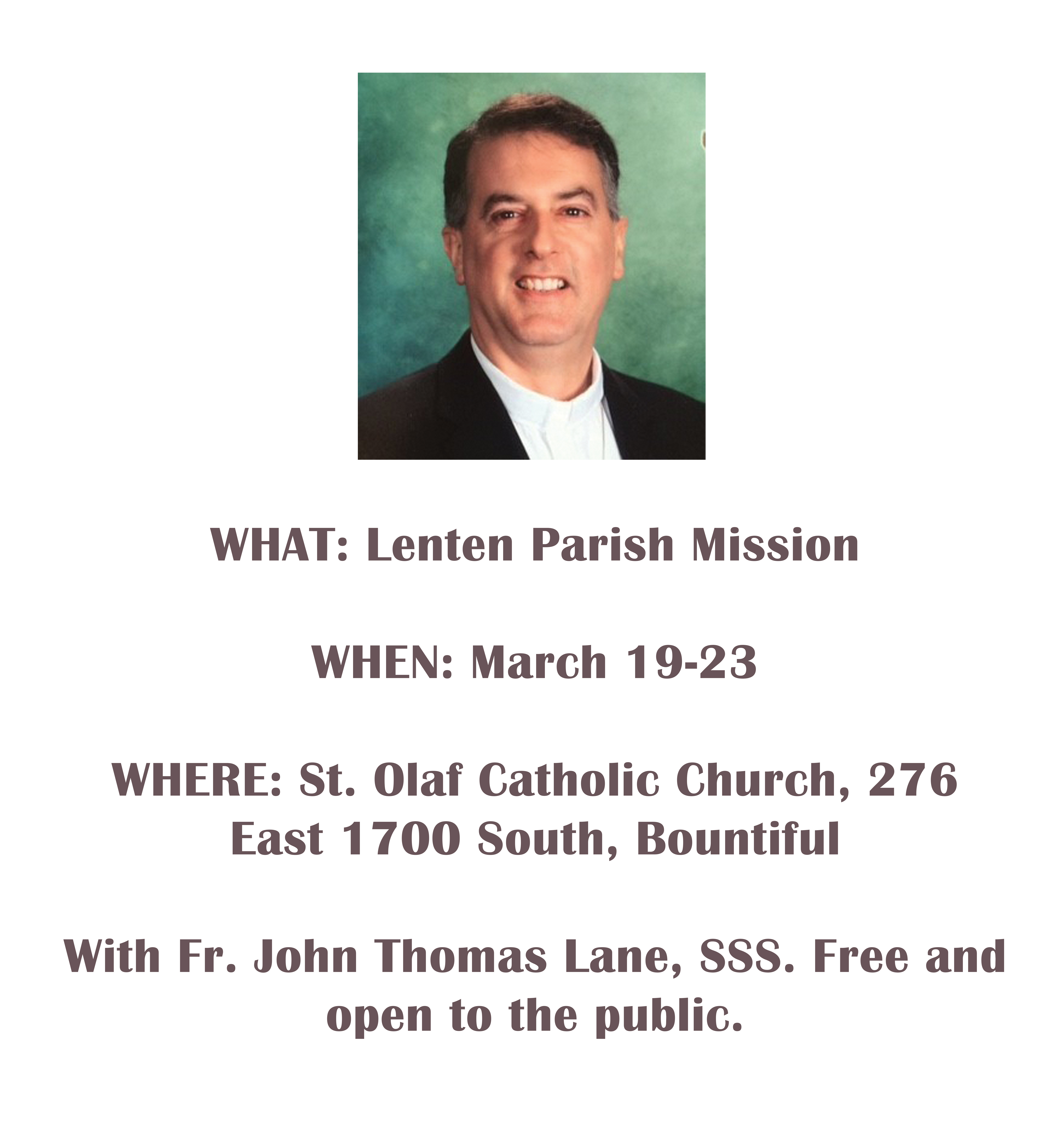 BOUNTIFUL — St. Olaf Parish in Bountiful will host a Lenten parish mission March 19-23.