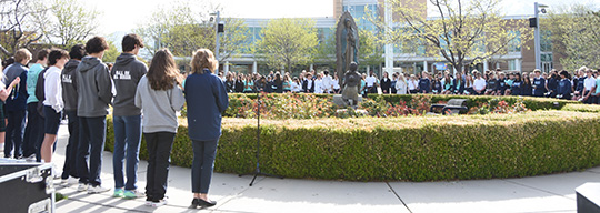 Saint John the Baptist Catholic Middle School students gathered in the Skaggs Catholic Center’s Grotto of Our Lady of Guadalupe on May 9 to pray the Glorious Mysteries of the rosary. These mysteries focus on the Resurrection and Ascension of Jesus, Pentecost, and Mary’s assumption and coronation as Queen of Heaven. Students dedicated the rosary to mothers and grandmothers living and deceased, honoring them, along with Mary, for their constant love and care.