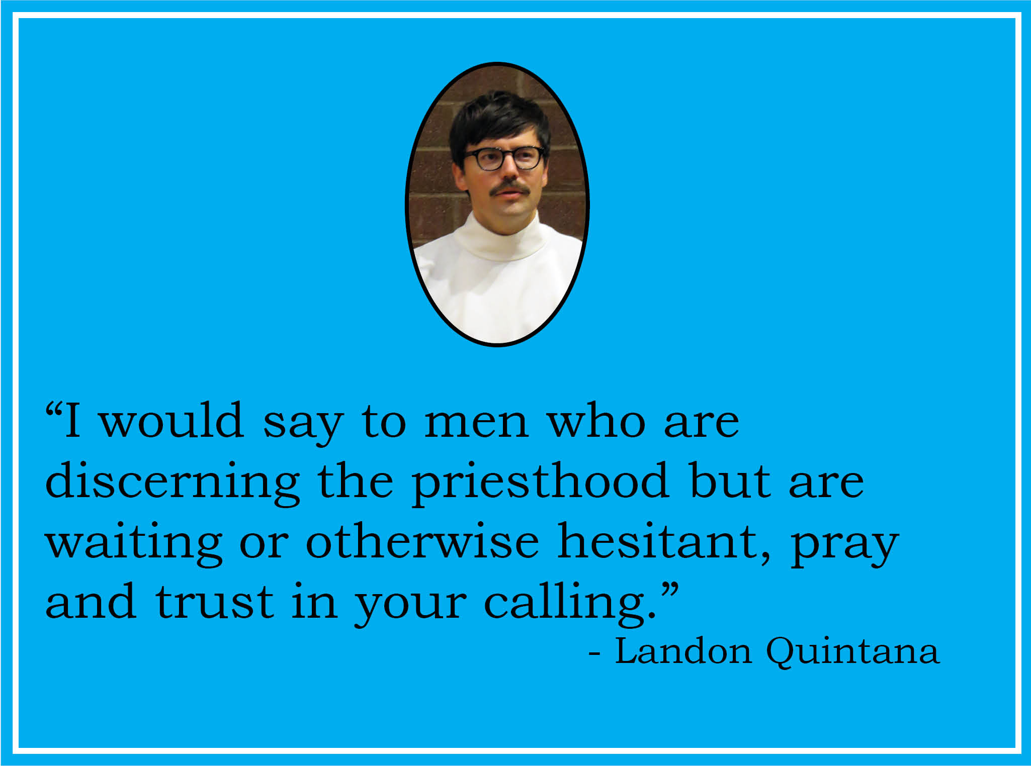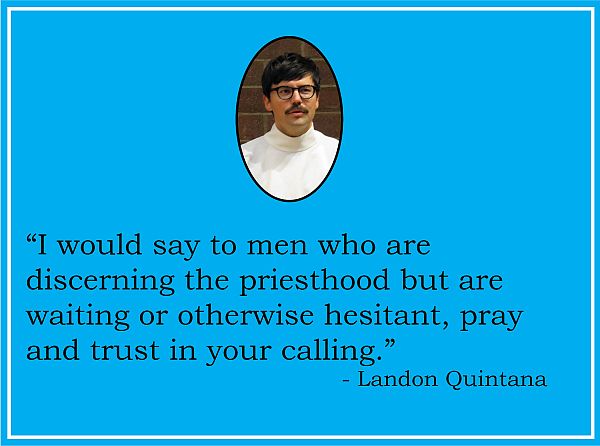 “My journey to the seminary has been a long one,” Quintana said. “I have found that my calling has stayed with me throughout. I would say to men who are discerning the priesthood but are waiting or otherwise hesitant, pray and trust in your calling. God knows what he wants, and he is the most patient.”