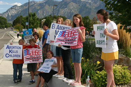 DRAPER — Pro-lifers received many positive honks and waves from motorists as they formed a prayer chain on each corner of the intersection of 10600 South and State Street with signs that read “Pray to End Abortion,” and “Abortion Kills Children.” The event marked Respect Life Sunday on Oct. 1.
