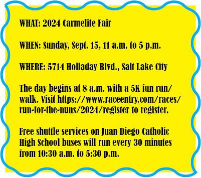 HOLLADAY— This year’s Carmelite Fair will take place on Sept. 15 at the Carmel of the Immaculate Heart of Mary in Holladay. The day draws Catholics and members of the wider community to the monastery for family fun that includes live entertainment, auctions, children’s games and food vendors. Exposition of the Blessed Sacrament will be in the chapel from 11 a.m. to 4 p.m.