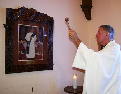 HEBER — Las heridas emocionales dejadas por la muerte del Diácono Aniceto Armendáriz en septiembre de 2005 están aún frescas en las mentes y en los corazones de la comunidad Católica de Heber. Una fotografía del Diácono Armendáriz, quien fue asesinado con un disparo mientras manejaba de la Iglesia de Sta. María de la Asunción en Park City a su casa en Heber, en septiembre de 2005, es el centro de un monumento dedicado al diácono asesinado. El monumento fue dedicado y bendecido el 18 de junio por Monseñor Robert J. Bussen, párroco de la Parroquia de Sta. María de la Asunción, de la cual San Lorenzo es una misión. Alma Armendáriz, esposa del diácono, quien fue herida cuando el vehículo se volcó después del ataque, asistió junto con los hijos de la pareja a la Misa de dedicación. La fotografía del Diácono Armendáriz lo muestra vestido con el alba y la estola de un diácono ordenado, sonriendo y parado ante el altar de la Iglesia de Sta. María de la Asunción. La foto está enmarcada en un marco hecho a mano por Dan Lowell, artista de Heber y amigo cercano del Diácono Armendáriz. En la parte superior del marco se puede reconocer fácilmente el Monte Timpanogos. «Yo quise usar montañas en este monumento porque Aniceto acababa de terminar de construir su casa cuando murió», dijo Lowell. «Él estaba contentísimo de que cada mañana cuando se levantaba podía mirar por la ventana de su recámara y ver las montañas.» Lowell también talló en el marco hojas de chaparros y chiles jalapeños, junto con ráfagas de corrientes de agua de los cañones. «Un día después de que Aniceto fuera asesinado, empecé a hacer los bosquejos para este monumento», dijo Lowell. «Él fue una persona maravillosa y un buen amigo.» La gente de la Misión de San Lorenzo escogió honrar la memoria del Diácono Armendáriz el Día del Padre. Fue padre de cuatro niños, tres hijos y una hija. Alma Armendáriz continúa la obra de caridad de su esposo a través de la oficina de los Ministerios de la Sta. Cruz en Heber. En su homilía en la Misa de dedicación, Monseñor Bussen habló primero en español a la familia de Armendáriz diciendo, «El Diácono Aniceto murió por el bien que hacía por los demás. Él siempre permanecerá como un hermano para todos nosotros.» En inglés, Monseñor Bussen relacionó en forma muy cercana la Misa de dedicación con la fiesta de la iglesia de Corpus Christi, el Cuerpo y la Sangre de Cristo. «La iglesia de los comienzos no hubiera pensado del Cuerpo y la Sangre de Cristo en el pan y el vino», él dijo. «Ellos solo habrían pensado en él dentro de ellos mismos. Ellos sabían que nosotros, cuando nos reunímos, somos el Cuerpo y la Sangre de Cristo, no solo somos nosotros mismos.» Recordando al Diácono Armendáriz como un hombre semejante al finado Arzobispo Oscar Romero de El Salvador, quien fue asesinado mientras celebraba la Misa en 1980, Monseñor Bussen dijo que los dos hombres tenían en común su lucha por el pobre. «El Arzobispo Romero fue odiado por el rico y el poderoso. Solo unos días antes de su muerte él dijo: "Anden, mátenme. Me levantaré de nuevo." Hoy, 25 años después, su memoria es más fuerte. Él verdaderamente se levantó de nuevo en la vida de los Salvadoreños.« «De esta misma forma Aniceto continúa con nosotros», él dijo. «No se le ha olvidado. Nos reunimos hoy en su presencia, recordándolo como un ejemplo de fe.» Después de la Misa de dedicación hubo una bendición especial para todos los padres presentes.