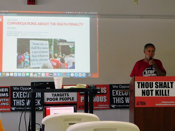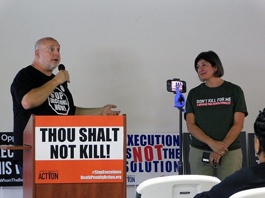 Entre los presentadores en el evento de la parroquia y la conferencia de prensa estuvieron Abraham Bonowitz, director del programa ‘Death Penalty Action’; SueZann Bosler, co-fundadora de ‘Journey of Hope … From Violence to Healing’; Charles Keith de ‘Death Penalty Action’; y Randy Gardner, cuyo hermano Ronnie Lee Gardner fue la última persona [antes de Honie] ejecutada en Utah. Randy Gardner también es miembro del comité de ‘Death Penalty Action”.