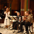 SALT LAKE CITY — The audience showed they thoroughly enjoyed Kate MacLeod and her guest musicians with a standing ovation as the second performance of the Madeleine Festival of the Arts and Humanities came to a close April 26. MacLeod and Mark Hazel performed an encore. "I enjoyed the program very much and thought it conveyed a sense of what I might call musical serenity that Kate MacLeod’s music embodies," said Drew Browning, Madeleine Festival program director. "In addition to her superb musicianship and vocal ability, it was nice that her vocal harmonist and playing musicians were so in tune with her style of music as well." "We are celebrating the centennial of the Cathedral, but I am also celebrating my 30th year of living in Salt Lake City," said MacLeod. "When I first moved here, I lived a couple of blocks away and I used to come in here and spend some quiet time. I was raised Catholic on the east coast and we had a Cathedral near us. Every once in a while we would go down to Washington, D. C., to the National Cathedral. "Cathedrals have always been a part of my life," said MacLeod. "So I wrote a song about cathedrals in general, but specifically for this one. I wanted to write about what happens when people create such a beautiful space, why they do it, so I put these ideas into the lyrics. Playing my violin in here is so special. I wrote it in the first person as if I was a building." MacLeod’s special guest was Diane Rubio, a cello player from Honolulu, Hawaii, who also plays the ukulele, flute, Chinese violin, sings, and does a lot of improvisation. She is in a group with her boyfriend called Falling Down Romance. Rubio met MacLeod last year at a Scottish Festival in Hawaii, and MacLeod invited her to come to the Madeleine Festival. Rubio grew up Catholic playing in a church band and choir in St. Joseph Catholic Church in Hilo. She was amazed to have the opportunity to play on the altar. "I always liked music, and fell in love with the sound of the cello," said Rubio. "To me music is about human feelings, love, and expressing emotions." Hazel plays guitar and sings. His bass voice has an unusual range. On most songs he offers harmonies that compliment MacLeod’s lead vocals, and he sings lead on a few songs. His guitar parts are usually rhythm behind MacLeod’s lead guitar, or sometimes they are single-note counter melodies. He is a scientist, but he has studied and performed music since he was a child in Ohio. Before picking up guitar, he accompanied choirs on piano, sang in choirs and an a capella madrigal ensemble, and played trombone in orchestras and brass ensembles. "I accompany Kate when she performs under her name, and I was one of the Pancakes on the Kate MacLeod and the Pancakes recording that is played on KRCL Radio sometimes," said Hazel. "I also play with her in the Celtic band Shanahy. She also plays under Red Rock Rondo. "I have played in the Cathedral before, but I was wishing sometimes that I could let go of my nervousness a little bit," said Hazel. "It was nice to look out and see the concentrating faces. We had a couple of expert guitarists, so it was different to not have my guitar in my hands. In a way it was nice, and in a way it was unfamiliar. My guitar is like a friend helping me out." Steve Keen played accordion, and has previously played in the Cathedral in two different groups for two Madeleine Festival series. He played with the Tango Project and the The KlezBros, who play traditional Jewish music and Eastern European wedding dance music. "I have played with Kate for many years," said Keen. "We have played Irish music and folk music, and now Kate plays with the KlezBros. Dylan Schorer played acoustic guitar, and played for the first time in the Cathedral. "The sound is amazing in here, and it was fun playing in a place where you feel the energy within, and it gives you something back that you can give back to the audience," said Schorer. "I usually play in coffee shops. I have been playing here and there with Kate for many years." "Tonight was exciting," said MacLeod. "I always get excited to play in the Cathedral because the richness of the violin always sounds so beautiful. "I came from a very musical family, although my parents were scientists," said MacLeod. "My father was a wonderful pianist and my mother an artist. Everyone in the family enjoys music. "I kept asking my parents if I could play the violin for a couple of years before they actually got me started," said MacLeod. "But I credit my first grade teacher because she called my mom and said when are you going to get her started on the violin, that is all she talks about. I also sang in school choirs from elementary school through high school. "I have been writing songs since I was a teenager, but I never performed professionally until after I raised my three children," said MacLeod. "Although I can put melodies to words or words to melodies, most of my songs come together at once. "I first came to Utah in 1979, to go to the Peter Prier’s Violin Making School of America in Salt Lake City," said MacLeod. "Once I started having a family, I stayed home with my kids. Then instead of getting back into violin making, I started performing mostly because people were interested in my songs. People were recording my songs before I did. "I started out performing under my own name before performing with a number of groups," said MacLeod. "I play mostly violin with many different groups and with many different performing artists. MacLeod also plays the guitar, harmonica, and made her debut at the Madeleine Festival playing Rubio’s ukulele. "I think that creating something is really important," said MacLeod. I always say it is the opposite of destruction. The more you create beautiful things and the more we get young people to get into creative work, the more it creates positive energy and positive action, and it is positive sharing with people." Since her first recording’s release in 19
