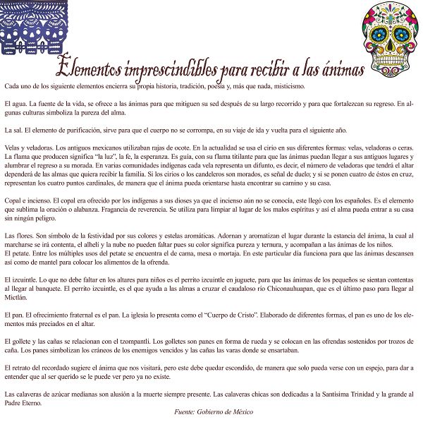 “Me encanta que cuando armamos los altares también estamos construyendo nuestra comunidad, cooperamos, nos divertimos, nos ayudamos y recordamos a la gente que extrañamos y queremos,” dijo Lowe. “… Pero, lo más importante de esta celebración es el respeto que crea por la vida de todos, y el valor a nuestros conocimientos y creencias culturales que fortalecen nuestra identidad.”