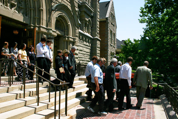 SALT LAKE CITY — "We come together to grieve the tragic loss of Sean McCoy," said Father Joseph Mayo, rector of the Cathedral of the Madeleine in a solemn funeral Mass at the Cathedral of the Madeleine June 24. "We grieve over the loss of one so young." Fr. Mayo concelebrated the funeral Mass for Sean with Father John Norman, and Msgr. Francis Mannion. Deacon Silvio Mayo, chancellor of the Diocese of Salt Lake City, and Deacon Lynn Johnson of the Cathedral of the Madeleine assisted as the altar. The Most Rev. John C. Wester, Bishop of the Diocese of Salt Lake City, attended the funeral in choir. The McCoy family are members of Saint Vincent de Paul Parish, Salt Lake City. "The McCoy family has strong ties with this place – for the last 11 years they have shuttled their boys to and from the Cathedral and the Madeleine Choir School for Masses, concerts, school days, and more," said Fr. Mayo. "Jeff and Marge McCoy have been tireless workers on behalf of the school and the choir. It is tremendously hard for all of us to be here with you today as we commend Sean to his final rest." Sean, 16, plummeted to his death June 19 when he fell 40 feet through a glass skylight and onto the floor of Bonneville Junior High School’s gymnasium. He had been walking on the roof of the school when the fatal fall occurred about 5:25 p.m. at the school located at 5330 South 1660 East, Salt Lake City. The McCoys live across the street from the school. McCoy just finished his sophomore year at Judge Memorial Catholic High School. "Sean was an integral part of our community," said Rick Bartman, principal of Judge Memorial. "He was our son, he was our brother, he was our friend, and we will miss him greatly. But, we, in our faith, know that he is with the Lord today, and that helps us through this. Our job now in the coming months and years is to support Sean’s family with our Judge Memorial family, and to ensure they want for nothing." "He was a very active and lively young man, who had a diversity of talents and interests," said Fr. Mayo in his homily. "He was a good student, and knew the need for self-discipline and work in becoming a vital member of his community. He was a skilled athlete, participating in tennis and other sports. He was a musician, whose skill and talent were further emerging as the years passed. Fr. Mayo said Sean served in the church as both a lector and an altar server. Last Christmas, he read for one of the Choir’s carol services. "Sean had a wry sense of humor, and a gentle manner, and while he could be at times irreverent and mocking, he was not mean-spirited or disrespectful of others. His parents and friends have described him as a happy young man who was full of promise and of hope. "For the past several days we have been confronted with the painful and stark reality of death," said Fr. Mayo. "We are grieving with Jeff and Marge, Sean’s brothers, his extended family, and his good friends. All of these bonds that define and shape our lives as human beings have been seemingly shattered and destroyed forever. Death, it would appear, has dealt a final and irrevocable blow. What sense can be made of our overwhelming grief, suffering and loss in the wake of Thursday afternoon’s tragedy?" Fr. Mayo said the Cross of Jesus Christ lays before us the challenge. In this teaching death becomes the criterion for how we live our lives – its seeming finality compels us to critically look at how we live and get rid of all that is trivial. It calls us to prioritize that which is most important – love. Love of God, love of neighbor, love of family, love of parents, love of children, love of stranger, and love of enemy. "Today we commend Sean to the rest promised to him by the Lord," said Fr. Mayo. "We commend Sean to that great resurrection promised to all of the friends of God. And with hope… nothing can separate us from our saving Lord."