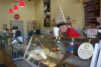 “My background has always been in sales of some kind,” he said. “I always wanted to open my own business and I knew this shopping center was going to be up and coming. I got the idea for Marble Slab while on a family vacation in Florida when we stopped at a Marble Slab Creamery. I loved the ice cream and immediately got online to find out the history of the franchise. Liking a challenge, I contacted the corporate office and the rest is history. It’s been tough with the economy the way it is and I can work 80 or 90 hours a week, but looking back, I’d do it all over again.”