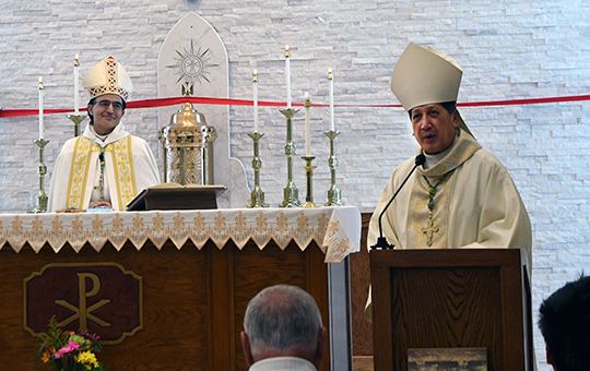 “On behalf of my brother priests and the people of God in the Diocese of Salt Lake City, I extend to you a warm welcome, warmer than the weather in the diocese in Salt Lake City. … Congratulations on this wonderful house of prayer, this house of God, to all of you. I hope that this beautiful church that has been dedicated by Bishop Zaidan will be a living testimony of God’s abiding presence and his offer of the gift of salvation to all who come and pray in this church,” Bishop Solis said.