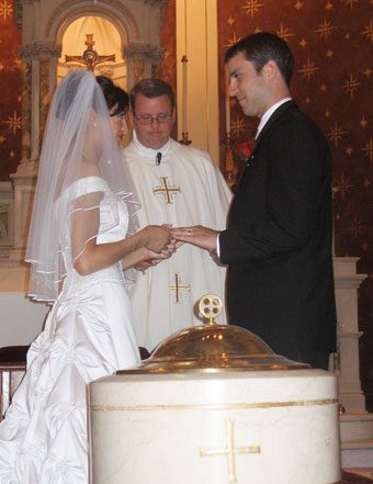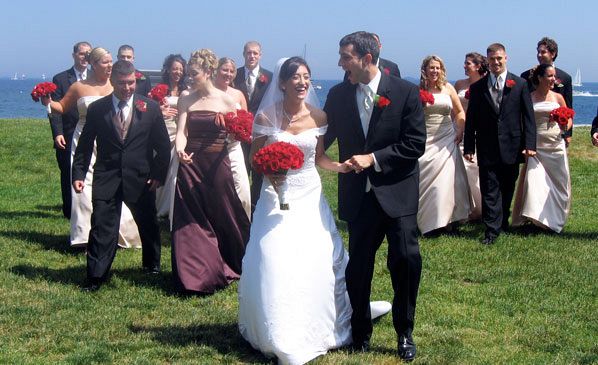 BEVERLY, Mass. — The arts festival crowd looked on in surprise and amazement as the 21-passenger Cadillac Escalade limousine drove slowly down the street and stopped in front of Saint Mary Star of the Sea Catholic Church in Beverly, Mass. The crowd cheered and clapped as nine bridesmaids and the bride, Angela Scally, got out of the limousine. One little girl asked if she could say hello to the princess. Angela and Eric Barber were married June 21, in Beverly, Mass. Angela was formerly a member of St. Olaf Parish, Bountiful. "You two come here today to ask to be married in the church because marriage is first and foremost a relationship with God, not first and foremost a relationship with each other. That is part of it," said Father David Barnes, pastor of Saint Mary Star of the Sea Parish. "God comes into your marriage so you can help each other get to heaven. From this day forward, you accept that responsibility. Later you will say the words I take you for better, for worse, for richer, for poorer, in sickness, and in health, until death do us part. Many people say these words are nice, but impossible to fulfill. But in the Catholic Church, we believe in love and through God and the Sacrament of Marriage, these promises can be fulfilled. In order to help you fulfill your commitment in this ceremony, God gives you all the graces necessary to fulfill all your promises." Angela and Eric are both 28 years old, and they met when Angela started working as a dental assistant in Eric’s childhood dental office. "He has always gone there for cleaning and dental work," said Angela. "So when he started coming in, I always thought he was super cute. Apparently he thought I was cute as well because he asked me out. But I said no because I was in a relationship with someone else. About a year and a half later, I was getting ready to leave to go to hygiene school full time. Right before I was going to leave, he came in to have his teeth cleaned and the dental hygienist said to him, ‘guess who is single?’ I was no longer in that relationship, so we ended up going out, and here we are. Now I clean his teeth. No one else is allowed to clean his teeth. "We started dating when I started hygiene school, so the first two years of our relationship were pretty tough," said Angela. "It was pretty intense. But we got engaged after a year and a half on Dec. 8, 2006, and we dated for three years. I just worked on Saturday mornings. I graduated from hygiene school in 2007." Angela is working for Drs. Peter and Sydney Frasca, a husband and wife team in Beverly, and Dr. Darryl Smith in Swampscott, Mass. She travels between the two offices. "I love what I do," said Angela. "This is what I should be doing. When I got into this field, I knew I wanted to stay. This is a great field if you want to have kids because it is flexible. We want to have children, and I just like teeth." Eric graduated from North Eastern University in Boston, Mass., in Civil Engineering and was working for the Department of Public Works for the City of Beverly when we met. Since then he was promoted to City Hall and is working as a civil engineer. Two days before the wedding he found out he passed a professional engineering test he took in April for which he has been studying this past year. Now many doors will open for him. Angela said he qualified to take this test once he had been out of school five years. "We have a lot of things going on and I am so excited," said Angela. "Our jobs played a big part in deciding to do the type of wedding we have planned because it is going to be an all day affair. Eric and I are paying for the whole wedding ourselves for the most part. "We kind of got ahead of ourselves, but this is exactly the type of wedding we wanted, and we do not have any regrets," said Angela in an interview with the Intermountain Catholic before the wedding. "Eric and I planned this wedding together," said Angela. "He has been awesome." The day began at 7 a.m. for Angela, her mother, her, sister, Tina, who was her maid of honor, and some of her nine bridesmaids at the Scally home. They had their hair done by Brianna Bryson and their make-up done by Heather Crosbie. The photographer arrived at 11:30 a.m. for pictures. The limousine arrived at 12:30 p.m. to take everyone to the church for the 1:30 p.m. ceremony. Following the ceremony pictures were taken in Lynch Park, which overlooks the Atlantic Ocean. It was a beautiful sunny day and the weather was perfect. From the park the limousine took the entire wedding party including the eight groomsmen and nine bridesmaids to the Commons in Topsfield, Mass., for the reception. The Commons is a gorgeous Christian church that was converted into a reception hall. The reception began with a cocktail hour complete with hors d’oeuvres and an open bar. From there the 204 guests were invited to a sit down dinner of either steak or chicken. The entire wedding party was introduced and seated. Dinner was followed by an evening of dancing, even by people who said they never dance. Following the reception, the guests were invited to a casual after-party at the Comfort Inn. A shuttle was provided between the Commons and the hotel. This was a wedding to remember. It would have been a somewhat sad occasion for Angela if her grandmother, Jean DeFillipo, had not been able to attend. "When we found out my grandmother was sick, I lost it," said Angela. "Because as far as I am concerned, my grandmother is going to live until I am 80. That is just the way it is. My mother is never going to die. Without my grandmother, I could not have received the schooling I did. She supported me. There is nobody on this planet that I can compare my grandmother to. She is so special to me. I lived with her nine years. I got an Associate Degree in business from Marian Court College, while living with her, and working full time. "So when she got sick, literally the day after Christmas in 2007, I said I am not getting marri