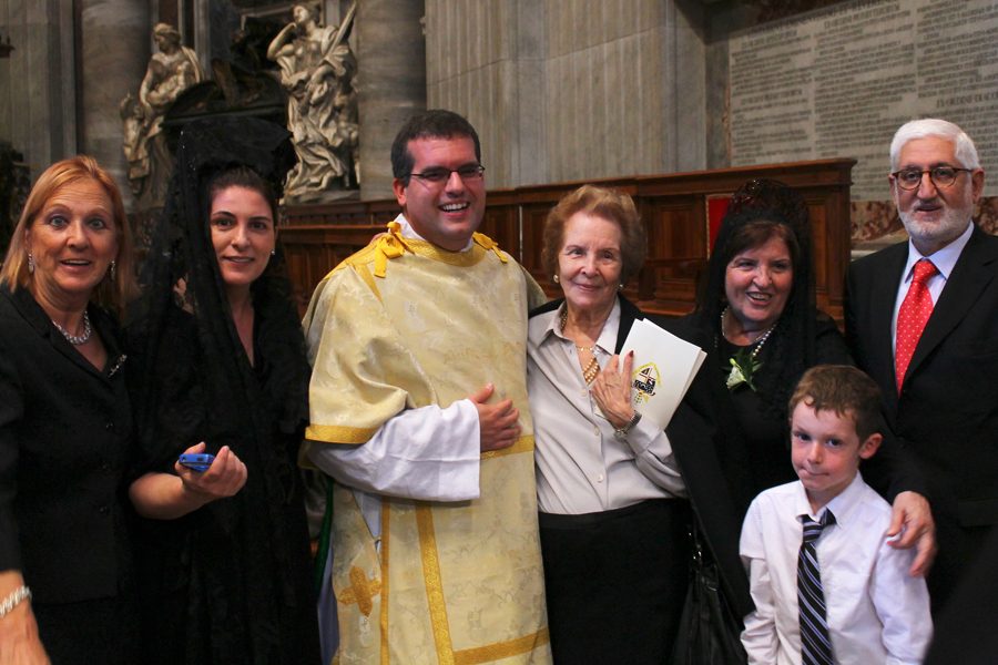 De salida del área del Altar, nosotros los diáconos recientemente ordenados fuimos a una de las esquinas cercanas de la basílica en donde esperamos la procesión de más de 100 sacerdotes con celebrantes y de muchos diáconos ordenados para que regresaran a la sacristía para fuera tomada una fotografía. Tan pronto llegamos al altar de Leo el Grande, expresamos nuestra alegría y camadería con calurosos abrazos y sonrisas que mostraban nuestra felicidad. "¡Felicidades Diácono!" se escuchaba repetidamente, seguida por un "¡Que Dios lo bendiga, Diácono!"