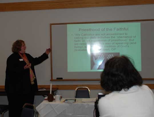 SALT LAKE CITY — With an icon of Christ the Teacher, Susan Northway, director of the Diocesan Office of Religious Education, began the Jan. 12 meeting of the Diocesan Pastoral Council at the Vaughan Center at St. Ambrose Catholic Church. One of three presenters, Northway spoke of the work of her office. She was followed by Matthew Boerke, director of the Office of Youth and Young Adult Ministry, and Maria-Cruz Gray, director of the Office of Hispanic Ministry. "Our first responsibility as Catholic educators is catechesis, and Jesus told us to ‘go out and make disciples of all people,’" Northway said... "The Church is missionary by nature, and that urgent call to ministry is permeated by joy as Jesus sends us out." Northway explained that her office includes: evangelization and catechesis; catechesis formation and certification; and the lay ecclesial ministry program. "In teaching religious education, catechesis, we are following in the footsteps of the apostles," she said. "As St. Paul said, ‘My teaching is not my own.’" "We preach as we teach," Northway said. "Catechesis is the ministry of the Word." She pointed out four aspects of catechesis, including: promoting the faith; promoting knowledge of the liturgy and the sacraments, which is building the Kingdom of God; preparing Christians to work, live, and minister in community; and preparing Christians to be present as Christians as they live in the larger society. Chatechetical training for religious educators includes from 36-40 hours of experience for certification, she said. "Our office also offers spiritual formation, a monthly newsletter, teaching through use of the electronic media and distance learning. We also use DVDs, E-mail, and other modern media techniques. "Our office also presents the annual Pastoral Congress that draws from 600 to 700 attendees, in addition to focus days, retreats and days of prayer." "Lay ecclesial ministry," she said, "is in-depth ministry formation. We are in our third year with our first group. Our theme is ‘Co-workers in the vineyard of the Lord. The four pillars of the Lay Ecclesial Ministry are: faith, vocation, building community, and responsibility. Lay ecclesial ministers are called to holiness, communion, and to witness as a priestly people." Northway said 30 people are currently involved in the Lay Ecclesial Ministry program, which is taught in collaboration with the University of Notre Dame, and they collaborate with the Diocesan Office of Youth and Young Adult Ministry and the Diocesan Office of Hispanic Ministry." Her office is always looking for new ways to develop systematic adult education as well as youth education. "We are constant trying to develop creative ways to assist teachers, Northway said. "We have begun to teach whole family catechesis that involves everyone." Matthew Boerke of the Diocesan Office of Youth and Young Adult Ministry, said it is a challenge to get and keep young adults involved in religious education and the activities that go with it. "One of our challenges is that we have so many young people who don’t live near our Catholic schools. We have to pay special attention to our youth out in the rural areas of the diocese." Boerke said the goals of his office include inviting youth and young adults to become involved in parish life; young adult ministry and diocesan events. "Our goal is to help our youth and young adults to fully encounter Christ and his Church," Boerke said. "Our young people have to be willing to change; to become empowered, and to live as disciples. Our call to discipleship includes drawing young people to responsible participation in the life, mission, and work of the faith community, to foster the total personal and spiritual growth of each young person, and to encourage them to live as Catholics in community life." Boerke showed an illustration of the aspects of life that lead youth and young people to God. They include: catechesis, advocacy, evangelization, justice and service, leadership as servant leaders, pastoral care, prayer and worship, and making and forming well-rounded Catholics. He developed lists of parishes who involve their youth and young adults well, those who involve them moderately well, and those who need to work harder at inviting youth and young ministers to participate. Boerke also spoke of PARA, Parish Athletic Recreation Association, and what they have to offer, the Girl and Boy Scouts, and Newman Centers, all of which encourage young people to become involved in faith activities. "The support of the parish and the pastor are the keys to our ministry," Boerke said. Parish and pastoral ministry is also vital to the work of the Office of Hispanic Ministry, which is experiencing growth as the Hispanic community in Utah increases, said Maria-Cruz Gray. In Utah, 72 percent of Hispanics consider themselves Catholic and it is our responsibility to meet their needs. I consider the Hispanic Catholics a bridge to the mainstream church. "We make use of the resources of the Diocesan Office of Religious Education and the Diocesan Office of Youth and Young Adult Ministry," she said. "I do the same work they do, but in a different language." "Hispanic/Latinos are present in practically every diocese in the United States," she said. "We are here to encourage them to become members of the Catholic community, not to proselytize them in any way." Cruz Gray said the Hispanic community is a young community, with many young people who have been born in this country. The number of Spanish Masses in the Diocese are increasing, and all seem to be full with open doors, said Father Ken Vialpondo, pastor of St. Joseph Parish, Ogden. In the Cathedral of the Madeleine, 1,400 Hispanic/Latino adults filled the church for the Epiphany celebration while 750 children were downstairs meeting the Three Kings, Cruz Gray said. "If you open the door to Hispanic people, they will come, but they must feel welcome... I am grateful for bilingual re