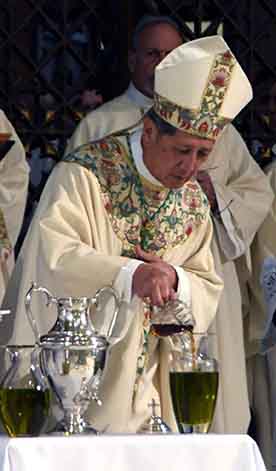 Después de renovar sus votos, el Obispo bendice los Santos Òleos- El Òleo de los Enfermos, el Òleo de los Catecúmenos (el cual se usa en el Sacramento del Bautismo) y el Santo Òleo (el cual se usa en el Sacramento de la Confirmación y el Sacramento de las Santas Òrdenes.) Después de la Misa, esos óleos son distribuidos por toda la diócesis para así llevar la misión de la Iglesia de amor y servicio al Pueblo de Dios.