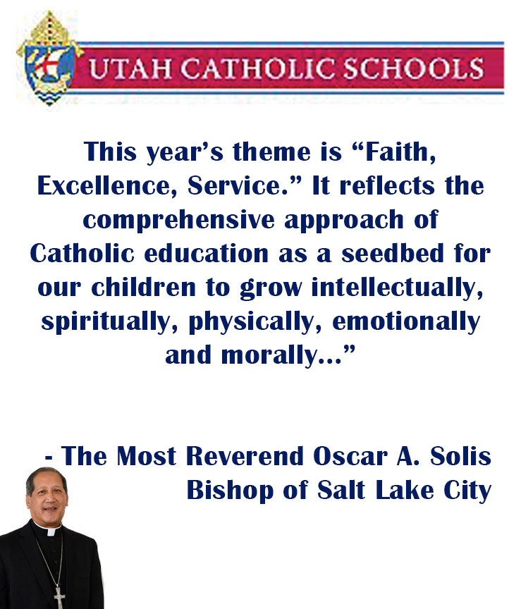 I commend Mark Longe, superintendent of Utah Catholic Schools, the teachers, principals and staff for all their dedication, creativity and enthusiasm in their service to our Church and communities. We appreciate the parents, who are the first teachers of children in the ways of faith, for their essential partnership and collaboration with the Church in the mission of evangelization; as well as the continued support of donors and benefactors.