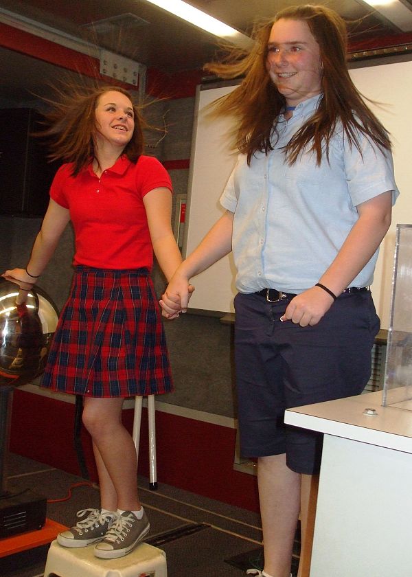 Discovering the wonders of science and math comes in many forms and is accomplished in a variety of ways. One way is the National Science Center's Mobile Discovery Center (MDC) van, which visited Blessed Sacrament Catholic School on April 17. Students and teachers in grades fourth through eighth were immersed in the excitement of hands-on science activities. Housed in an 18-wheeler van and staffed by U.S. Army military and Department of Army civilian personnel, MDC van presentations showed students that studying science, technology, and math can be exciting and fun as well as essential to their future. The MDC mobile classroom is equipped with SMART Technology to enhance students' interactivity. Hands-on science demonstrations are designed to be fun and informative. A 50-minute MDC presentation consisted of hands-on, interactive science demonstrations. Mobile Discovery Center programs are made possible by a partnership between the U.S. Army and the National Science Center, Inc.