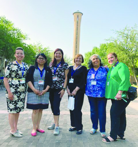 Six Hispanic women leaders from the Diocese of Salt Lake City received an invitation from Catholic Extension to attend an event titled ‘Mujeres Valientes’ (Brave Women).The event consisted of a two-and-a-half-day conference for Latina Catholic leaders from dioceses across the United States, with the goal of creating a network of women leaders in the Church. The event was a collaborative effort of Catholic Extension and the University of Dallas’ Ann and Joe O. Neuhoff Institute for Ministry and Evangelization. Shown from left are the Salt Lake diocese’s conference participants: Rosario Cano, from Notre Dame de Lourdes Parish, Price; Holy Cross Sister Laura Tiburcio; Marilyn Acosta, from Saint Rose of Lima Parish, Layton; Maria Cruz Gray, director of the diocesan Office of Hispanic Ministry; and Martha Chadaz and Martha Gaeta from Our Lady of Guadalupe Parish in Salt Lake City.