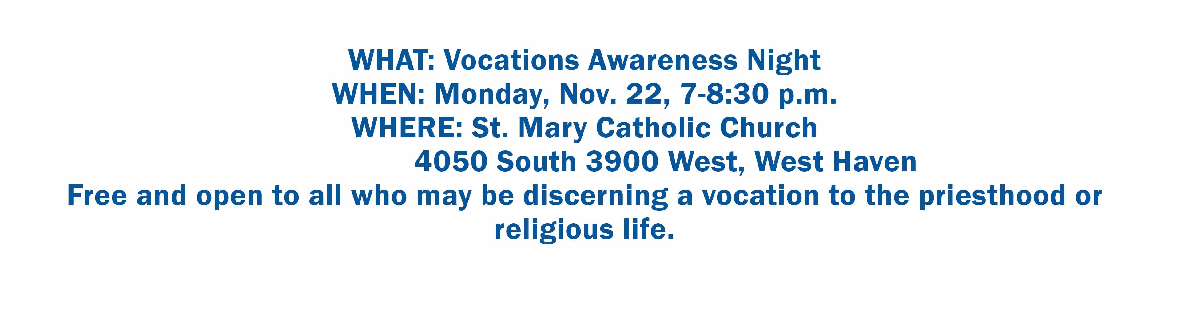 WEST HAVEN – Saint Mary Parish will once again hold a Vocations Awareness Night that is open to the greater community. Fr. Oscar Picos, pastor, will host the Nov. 22 event.