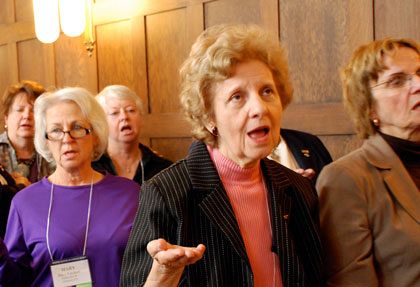 SALT LAKE CITY — The Most Reverend John C. Wester, bishop of the Diocese of Salt Lake City, welcomed more than 650 members of the National Council of Catholic Women (NCCW) to Salt Lake City and the Cathedral of the Madeleine at the opening Mass of the organization’s annual general assembly. The women filled the Cathedral of the Madeleine, and the Mass featured the voices of the choristers of the Madeleine Choir School. Nearly 60 priests from across the United States attended the Mass. Bishop Wester praised the women from dioceses all across the country for all the work they do in supporting each other, in their commitment to the education of women, and in their work in the area of spirituality, which he called, "inspiring." In his homily, the bishop spoke of his niece and nephews who often complain, even in this era of technology: "‘Mommy, I’m bored.’ "I know it is risky to compare one generation with another, but I think I hear that complaint about being bored more today than when we were growing up. I notice that when you give young people very expensive gifts, they often tear the wrapping paper off, set the gift aside, and play with the cardboard. "In the readings today we hear about people who are bored," the bishop said. "In the Gospel of Luke we hear that Herod is bored in the midst of all of his power. Certainly his life is not fulfilled and he is looking for something. Still, there is something about this Jesus that fascinates him. He could have been engaged by God if he’d known Jesus. It’s tragic, though, that he finally meets Christ only when Jesus has been condemned to die." The bishop said our lives can be boring. It can seem like we’re going nowhere. "But we can be engaged by God who gives us life and passion. We can have a relationship with Christ, and only Christ gives real meaning to our lives, for it is him in whom and through whom and for whom all things exist. We don’t want to be like the bored king, unable to engage in anything. "You and I are called to enter into a relationship with God, so life for us is never boring. We don’t grow stagnate in our relationship with Christ. "Living in relationship with Christ gives us purpose, meaning. There is no boredom for us, and there is no boredom for you." The bishop said his experience with the Diocesan Councils of Catholic women in both Utah and San Francisco have been so positive. "You are women who pray," he said. "And Christ is the center of all you do. You are women who clearly are in relationship with Christ. He is at the center of all your gatherings and he is clearly part of your lives." Bishop Wester told the story of seeing a woman in an airport the day before. She was wearing a shirt that said, "10 reasons why I’m glad to be Catholic." As tempting as it was to walk over and ask her if she was on her way to the general assembly in Salt Lake City, the bishop refrained. "But she was obviously excited and passionate about being a Catholic, and she wanted others to know it." He recognized that most of the women of the NCCW are active on the parish level, "but there are those active on the diocesan level as well," he said. "You are well defined by your mission statement: The National Council of Catholic Women acts through its membership to support, empower, and educate all Catholic women in spirituality, leadership, and service. NCCW programs respond with Gospel values to the needs of the Church and society in the modern world." In more practical words, the bishop said, you in the NCCW are a voice for Catholic women today; you are transforming the world through prayer and action; the NCCW unites more than 5,000 affiliated Catholic women’s groups in the United States; you support social action through Gospel values; you train Catholic women to become leaders at the intersection of Church and society; you provide a forum for Catholic women to speak and act on matters of mutual interest, and you are one with the Church... "Wow, how do you do all that you do? "The NCCW is the perfect antidote to boredom."