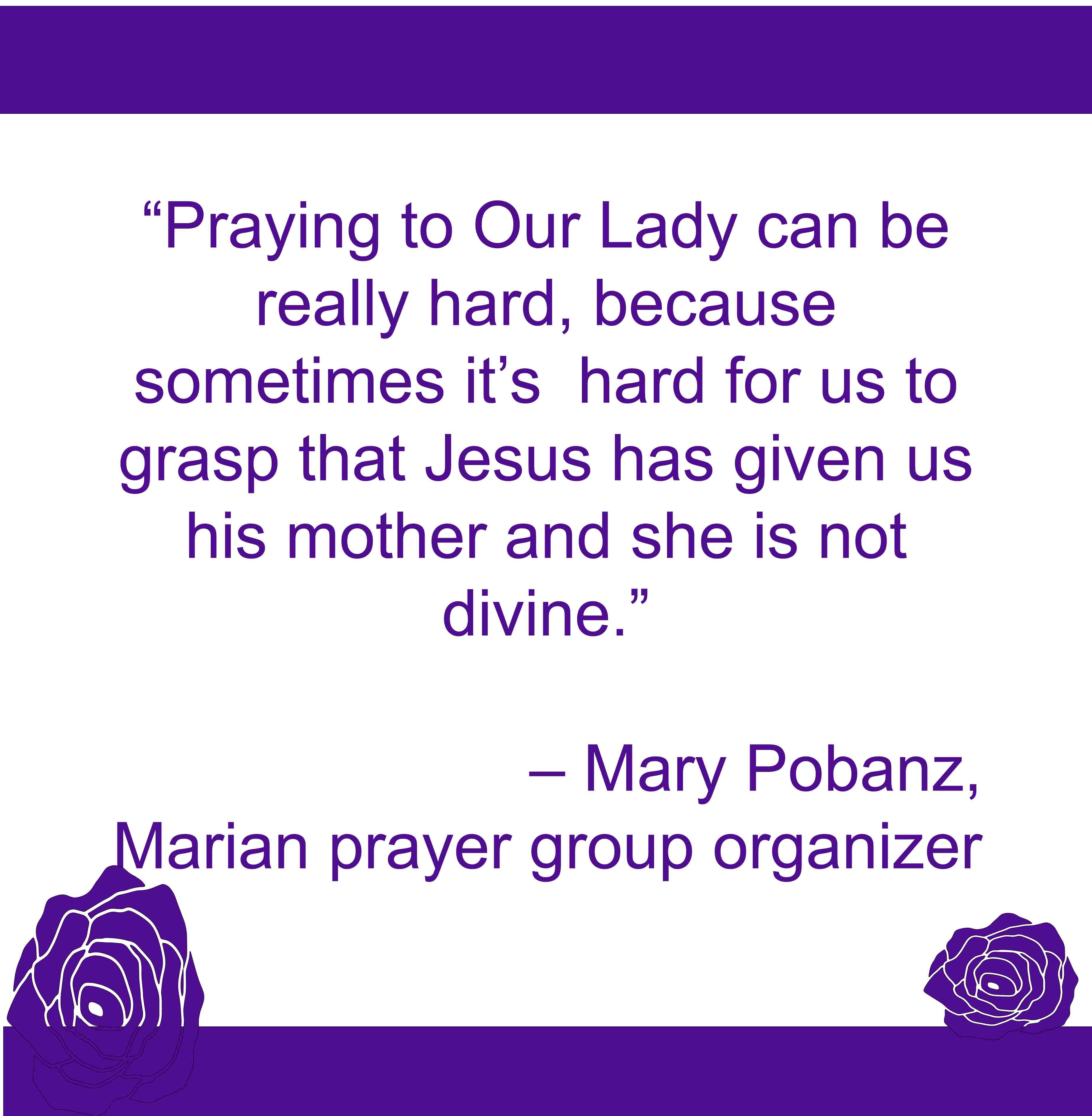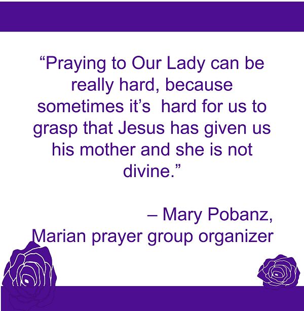 “Prayer is very important and sometimes people forget that praying to Our Lady is important, too,” she said. “Praying to Our Lady can be really hard, because sometimes it’s hard for us to grasp that Jesus has given us his mother and she is not divine.”