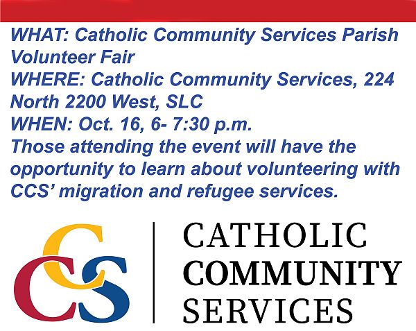Additionally, CCS is holding a parish volunteer fair at its offices on Oct. 16 to share information on volunteering with migration and refugee services.