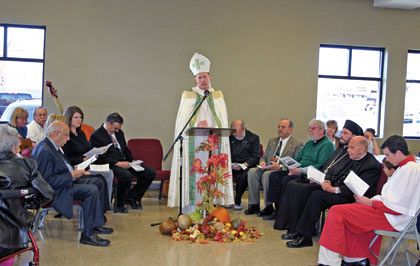PRICE — It was an exciting day as the community of Price came together for the blessing of the Notre Dame Parish Center Nov. 23, on the Feast of Christ the King. The new Parish Center is across the street from Notre Dame de Lourdes Catholic Church. "Father Don Hope, we congratulate you and your parishioners for this great accomplishment," said the Most Rev. John C. Wester, Bishop of the Diocese of Salt Lake City, in his homily at a Mass celebrated prior to the dedication. The Mass was concelebrated by Bishop Wester, Vicar General Msgr. J. Terrence Fitzgerald. Father Colin Bircumshaw, pastor of Saint Ann Parish, and former pastor of Notre Dame de Lourdes Parish, and Fr. Hope, pastor of Notre Dame de Lourdes Parish, Mission San Rafael in Huntington, Mission Good Shepherd in East Carbon, and Mission Saint Michael the Archangel in Green River. Chancellor Deacon Silvio Mayo was deacon of the Mass. Dignitaries in attendance for the dedication of the Parish Center were Father Athanasios Emmert of Assumption Greek Orthodox Church, Mayor Joe Piccolo, and parishioner Stephen Cha of the Notre Dame steering committee. "After much work and prayer by so many members of your parish, we gather now to bless this new parish center," said Bishop Wester in the ceremony. "Here the young will learn of their Catholic faith and adults will deepen their commitment to live as Christ has taught us." Bishop Wester said blessings are meant for people, but we also bless things in the church that people use, so the classrooms, the chapel, the kitchen, and the social space were all sprinkled with holy water. He asked God to bless this Parish Center and all those who enter its doors, that they come in peace, they leave in peace, God’s spirit will always dwell there, and this will always be a place of comfort. "This catechetical center is a place where this parish and this larger community will center around Christ, the light of the world," said Bishop Wester. "It is a place where children will come to be taught their faith, couples will come to prepare for the sacrament of marriage, families will come to prepare funerals and to grieve or to pray for their loved ones. People will come here to learn about becoming stewards as they prepare for confirmation, learn about the mercy of Jesus as they prepare to receive the Sacrament of Reconciliation, to praise God, and some members of the community will be inspired to go to the seminary to become a priest, deacon, or religious. Bishop Wester said this is a place that is holy, that is sacred, where people will gather to be nourished, to celebrate joys, sorrows, triumphs, and glories, and just to come together to recognize that Christ is always the unseen host of every meal, table, classroom, gathering, and of every dialog. "I want to thank Bishop Wester, Msgr. Fitzgerald, Fr. Bircumshaw, and Deacon Mayo for coming to be with us," said Fr. Hope. "They have roots of one sort or another to Carbon County. I want to thank Fr. Athanasios. The Assumption Greek Orthodox leaders have been so gracious to us these last several years letting us use their religious education center, and making us feel at home. Words cannot express the thanks we have for your generous hospitality." "I want to thank Franciscan Father Edward Metzger, administrator of Saint Anthony of Padua Parish, Mayor Piccolo, and all the city and county planning agencies who were so helpful and gave us so much support. I want to thank board members Catherine Kane and Judy Beacco. They have a deep and abiding faith, a great love for the Church. I can call them 24 hours, seven days a week, and they would never say no out of their love for the Lord and their great love for the people of Notre Dame. "The Community Center is a beautiful building, but the building is not what makes us church," said Fr. Hope. "It is when we come to worship the Lord that the building becomes church. You are the living stones, and you are the sign of Catholic presence in Carbon County. For 75 years we were privileged to have a full-time Catholic school. Now it is our religious education program, with dedicated teachers who share their faith with our young people. The real presence is in the living stones. We go out from our religious education center now to touch the lives of the community; to make Jesus present in our words and in our actions." Mayor Piccolo said he had the opportunity to become friends with Bishop Wester a year ago during the tragedy of the miners in Crandall Canyon. I have been friends with Fr. Hope for a long time, and the gratitude I have for Bishop Wester goes far beyond construction of this building. This building and Notre Dame Church are an icon of the Catholic community. This is the season for thanksgiving, and we could not have picked a more appropriate time to meet together today with the hopes in our hearts that this community will be made better with this facility standing here. I want to let you know, on behalf of my wife, that we love you and what you have done in our community, and we are part of that. This is a beautiful new center, and it will go forward to help make life better in Price, and in Carbon County." Steve Cha, the son of a coal miner, parishioner, and member of the steering committee, said there are many people who need to be thanked for putting this facility together, who helped with the fund raising, and helped along the way. The Over the Rainbow continuing fund raiser got the parish started with donations. Fr. Athanasios helped us continue our Sunday school program, with Pamela Cha and Roy Nikas, who served on the board of the Assumption Orthodox Greek Church. Cha said this center will continue the heritage Carbon County has had for many years in allowing them to pass on the spiritual understanding and training needed in life. "We are a strong group in Carbon County, made up of various cultures and faiths, and that is what makes this town and our faith so special," said Cha. "This accomplishment