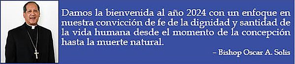 ¡Saludos de paz y amor de Cristo! Damos la bienvenida al año 2024 con un enfoque en nuestra convicción de fe de la dignidad y santidad de la vida humana desde el momento de la concepción hasta la muerte natural. Esto es muy relevante ya que nos enfrentamos a un escenario alarmante en nuestro mundo. Es lamentable y triste que la cultura de la muerte que ataca el precioso don de la vida de Dios esté creando estragos y caos.