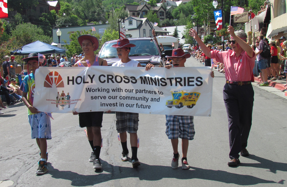Holy Cross Sister Mary Ann Pajakowski walks with the Holy Cross Ministries After School Program children in the Fourth of July Parade down Main Street in Park City. See the photo album on the Intermountain Catholic facebook page.