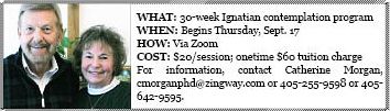 The $20 per session and onetime $60 suggested tuition charged by the Morgans covers the cost of books and materials, worker’s compensation and liability insurance required by the hosting parish, St. Thomas More. There is no cost to individuals to use Zoom, which can easily be set up on a computer, tablet or most cell phones.