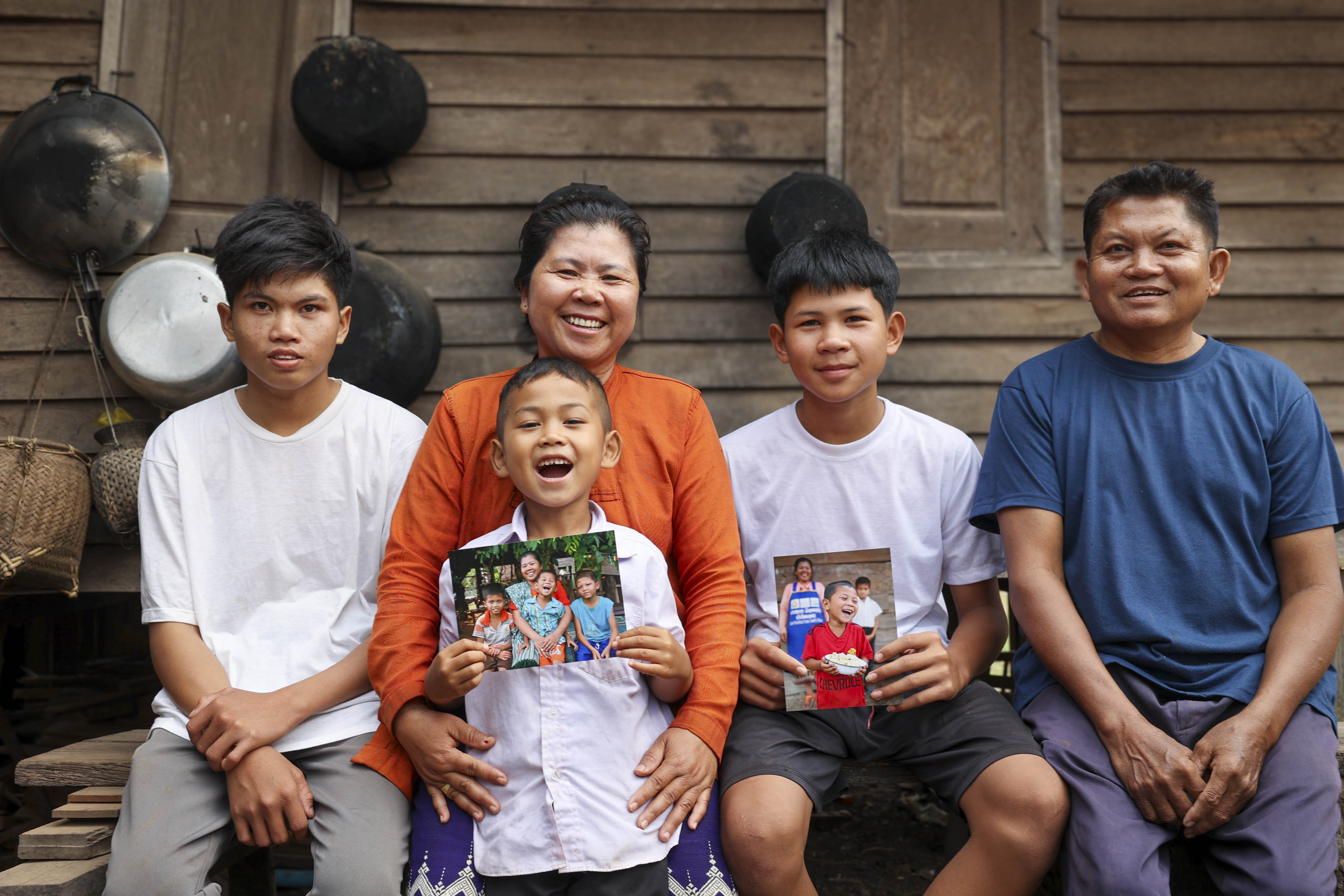 A Hongkham la conocimos en 2016 cuando era cocinera voluntaria en la escuela de sus hijos, la cual ofrecía almuerzos gratuitos para los estudiantes. Después de que su esposo se enfermara y tuvieran que vender su granja, la familia de Hongkham empezó a recibir alimentos cada mes mediante un programa de Catholic Relief Services. En estos ocho años, Hongkham se convirtió en una mentora en su comunidad. Además, formó un grupo de cocineros que se aseguran de que los niños siempre tengan una comida caliente. Cuatro de los seis hijos de Hongkham crecieron comiendo las comidas escolares y ahora son más altos que otros jóvenes de su edad. La salud de su esposo mejoró y ahora él trabaja como carpintero junto a dos de sus hijos.