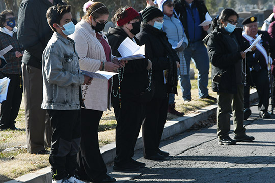 El Rosario diocesano anual bilingüe para orar por los no natos se llevó a cabo el 16 de enero enfrente al monumento por el No Nato en el cementerio CatólicoMount Calvary, ubicado en Salt Lake City. El Rosario fue recitado en inglés y en español, guiado por Donna Masek y por Rosario Cano. Cerca de 50 personas participaron. IC Foto/Marie Mischel