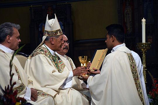 El Obispo Solis animó al diácono Parsad a emular a Cristo y a permanecer fiel a sus votos.