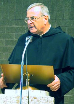 HOLLADAY — "God has assigned a heavenly spirit, a guardian angel, as our personal guide and companion all the days of our lives and beyond into eternal life," said Holy Cross Father Titus Kieninger, at "A Day of Recollection" retreat held May 6 at the Carmelite Monastery in Holladay. Fr. Kieninger presented a one-day retreat on the Blessed Mother, the angels, and the Holy Eucharist. Fr. Kieninger is a member of the Order of Canons Regular of the Holy Cross. The charism of this order is to share their devotion to the angels and also share in Christ’s redemptive love, which is nourished daily at Mass. The Order was founded in Portugal in 1131 by Dom Tello and St. Theotonius. It was due to the Marian spirituality of the Order that Portugal was the first nation to be consecrated to the Immaculate Conception in the 18th century. In 1834, when the civil government of Portugal became anti-Catholic, the order was violently suppressed. The restoration of the Order was undertaken in 1977 by members of the spiritual movement called the Work of the Holy Angels (Opus Sanctorum Angelorum). In 1979, the Congregation for Religious and Pope John Paul II formalized the restoration by Decree. Due to the remarkable correspondence between the legacy of the old Order and the spirituality of the Opus Angelorum, the church granted the privilege to introduce into the Order a special devotion to the angels according to the proven tradition of the church. The Order is currently established in Austria, Germany, Portugal, Brazil, Mexico, India, the Philippines, Italy, and the United States. Fr. Kieninger said tradition regards the angels as "messengers of God, potent executives of his commands, and ready at the sound of his words." Fr. Kieninger referred to the "Catechism of the Catholic Church" (331) which states, "Christ is the center of the angelic world. They are his angels…They belong to him because they were created through and for him: ‘for in him all things were created in heaven and on earth, visible and invisible, whether thrones or dominions or principalities or authorities, all things were created through him and for him.’" Fr. Kieninger said, "The angels intervened to save Hagar and her child Ishmael, they stayed the hand of Abraham as he was about to sacrifice his son Isaac, angels protect the footsteps of the just, and praise God unceasingly. "The angels played many roles in the life of Jesus," said Fr. Kieninger. "The Angel Gabriel declared to Mary that she would conceive and give birth to the Son of the Most High. An angel revealed to Joseph the supernatural origin of Mary’s conception, and angels appeared to the shepherds in Bethlehem with the news of the Savior’s birth. "The Angel of the Lord protected the infant Jesus when he was threatened by Herod," said Fr. Kieninger. "Angels ministered to Jesus in the desert and comforted him in his agony. Angels appeared to the women gathered at the tomb, announced he had risen, and appeared at the Ascension revealing its meaning to the disciples. The faithful also realize that Jesus will come in his glory with all the angels to judge the living and the dead." "The angels want to imitate Christ, serve, and honor him and Our Lady," said Fr. Kieninger. "We cannot think of Jesus without Our Lady because Jesus became man through her. The angels knew Mary was pure and special, and they knew she would give birth to Jesus before the Angel Gabriel brought her the message from God. "A guardian angel is a special gift because he is our body guard," said Fr. Kieninger. "Our guardian angel warns us in time of temptation or danger. Angels are with us throughout eternity as guardians because we are great in the eyes of God. There is no greater personal friend than a guardian angel. We can call on them for help. Guardian angels are a personal gift to us through baptism. It is unclear if a person who has not been baptized receives an angel. However, if a person is condemned to hell, the angel remains in heaven. Whoever denies the angels is not in full communion with the Catholic faith. Fr. Kieninger said the angels first appeared to keep man away from the Tree of Life. In section 391-395 of "The Catechism of the Catholic Church," it states, "Behind the disobedient choice of our first parents lurks a seductive voice, opposed to God, which makes them fall into death out of envy. Scripture and the Church’s tradition see in this a fallen angel called Satan or the devil. The devil and the other demons were indeed created naturally good by God, but they became evil by their own doing. There is no repentance for the angels after their fall, just as there is no repentance for men after death." "Do we really strive to move toward heaven?" asked Fr. Kieninger. "No one asked us if we wanted to enter into this physical life, but God asks us if we want to enter into his kingdom. We are afraid to fail, but the greatest danger comes from our own free will. The angels lead us to Our Lady, and she takes care of us and helps us mature to a life in heaven, but we must consecrate ourselves to her sacred heart." Fr. Kieninger said the Eucharist is the center of our church, and it is the role of the angels bring us nearer to God. If we turn our backs on God, we also turn our backs on our guardian angels. Jesus was on this earth for 33 years, and he came to serve and to save. Now the priests act in his name by consecrating the host into his body and blood. Jesus gave us the Eucharist in order to be our strength. Jesus wants to remain with us until the end of time.