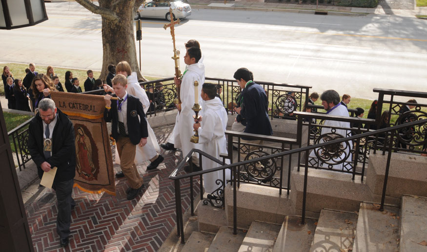 The Madeleine Choir School celebrated Our Lady of Guadalupe with great enthusiasm this year. I had the privilege of being the main celebrant of the Mass at the Cathedral of the Madeleine, which included a procession that began at the choir school and wove its way through the avenues to our beautiful Cathedral. The children were very excited as we honored Mary, the Mother of God and Mother of the Americas. It was a wonderful expression of our faith in God, who gave Mary such an exalted place in salvation history when he called her to be the mother of his only Son. When Mary appeared to Saint Juan Diego in Tepeyac in 1531, she appeared as a native Indian of Mexico, thus identifying herself with the poor. She remains to this day a powerful intercessor with her son, Jesus Christ, and again and again she showers us, her children, with many graces that stem from her maternal intercession. Our Lady of Guadalupe is the secondary patroness of our diocese and I encourage all the faithful to pray for her intercession that Christ will continue to bless us as we make our pilgrim way on this earth.