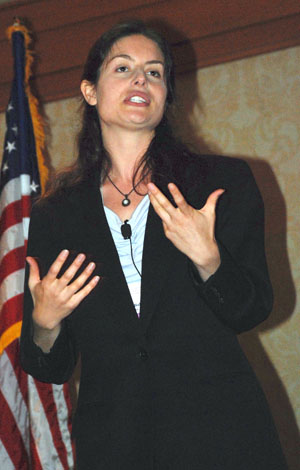 TUCSON, Ariz. — The Holy Land of Israel is considered sacred by the three largest monotheistic faiths – Judaism, Christianity, and Islam, but as tensions continually rise there, the smallest community of the three, the Christian Community, many of them Palestinians, suffers from the violence and oppression as much as the two larger communities. "Housing, employment, worship, freedom of movement, access to medical care, and access to educational institutions are deeply affected by the politics of the region, said Anna Baltzer, a Jewish-American activist whose visits to the West Bank awakened her conscience to the oppression of the Palestinian population under the current occupation of their lands by Israeli settlers and military forces. Baltzer is the granddaughter of Holocaust survivors, and a Fulbright scholar from Columbia University. Baltzer said her training and her travels have made it impossible for her to remain unbiased about how Palestinians are being treated in their own lands, which are rapidly shrinking due to the Israeli occupation. On a country-wide tour speaking about conditions she found in Israel and the occupied territories, Baltzer told members of the Equestrian Order of the Holy Sepulchre in Jerusalem at their annual conference in Tucson, Ariz., Oct 10, "This isn’t about Judaism or Islam; it’s about humanity and standing up for what’s right." She said the majority of Israelis are against settlements and the occupation. Author of "Witness in Palestine: Journal of a Jewish American Woman in the Occupied Territories," Baltzer has documented human rights abuses against non-violent resisters in Palestine, some of whom took her into their homes. "They gave me a different version of what I had learned about the Israel/Palestine struggles," she said. "I decided I had to do my own research, and that is what I am asking each of you to do. Don’t take my word for it." Using a Power-Point presentation, Baltzer showed the well-groomed roads built through Palestinian territory that Palestinian Christians and Muslims are not allowed to use. Instead, they are limited to using rocky, rugged, unpaved roads over which many of their vehicles are not able to travel. Add to the bad roads Israeli checkpoint through which Palestinian Christians and Muslims must pass, sometimes causing them to be held up for hours. "In the West Bank," Baltzer said, "there are check points between Palestinian town and villages that cut off family members from each other, cut of farmers from their fields, people from hospitals and doctors’ offices, and students from their schools. "In the West Bank, a 30-minute trip becomes a four- or eight-hour journey, or it can last all day," she said. "The checkpoints and the ‘security fence,’ a 26-foot high concrete wall in many areas, is disabling to Palestinian daily life, paralyzing really. Even ambulances and other emergency vehicles are not allowed to pass freely, and when I, a Jewish American, was allowed to pass through while Palestinians who had waited for hours were not, I asked the Israeli soldiers why they could not pass. He said, ‘I’m just following orders.’" Baltzer said the wall, the checkpoints, and the many Israeli settlements built on Palestinian Land exclusively for Israelis "are illegal according to international law." The speaker said Israel gets generous aid packages from the United States, which are funding the wall, the checkpoints, and the settlements. "We (Americans) are already involved in the conflict there," Baltzer said. "We’re paying for it. And I ask, does any segregation every bring peace?" More than 80 percent of the wall, which Israeli officials claim is being built to protect them from Palestinian suicide bombers, has been built on the Palestinian side of the border, cutting Palestinians off from key water sources. Baltzer said the Israeli people themselves do not present a problem. In fact, many Israeli citizens have taken part in demonstrations against the checkpoints, but Israeli officials appear to turn a blind eye to the concerns of their own people. "The average Israeli doesn’t even know about the wall. They want peace, but their government is making the decisions. "Since 1947, Palestinians have seen their land dwindle; and now it amounts to little more than small, isolated islands, and in many areas, Palestinian homes are being systematically demolished to make room for more Israeli settlements. "I believe it is clear the Israeli officials want an ethnically pure state," Baltzer said. "That idea is not unique to Israel. The same thing happened to the American Indians in the United States and to Bantustans in Africa during the era of apartheid. These people have lost all control over the process and their lives." Baltzer said in the meantime, all Palestinian influence is being erased in the area, and Arabic is disappearing as a language there. "Do your own research," she encouraged member of the Equestrian order. "Go see it for yourself, and support others who go. Join and support your own order’s justice and peace committee." At the same meeting, Dr. Bernard Sevilla of Northern Jerusalem, a member of the Palestinian Council, and Mary Sevilla of the Israeli Ministry of Health, said Bethlehem University, heavily supported by the Equestrian order, is welcoming more students with special needs. Run by the Christian Brothers, Bethlehem University is a haven for Christian and Muslim students who can study there. But the students are suffering under travel restrictions forced on them by Israeli officials. "Those restrictions affect many students," said Dr. Sevilla. "Gaza students are forbidden to attend the university, even though they already have been accepted." Mary Sevilla said Bethlehem and Hebron students’ needs cannot be met by their parents because the parents want their children to work instead of go to school, "but there is no work for them. We have traumatized students, and that has a debilitating