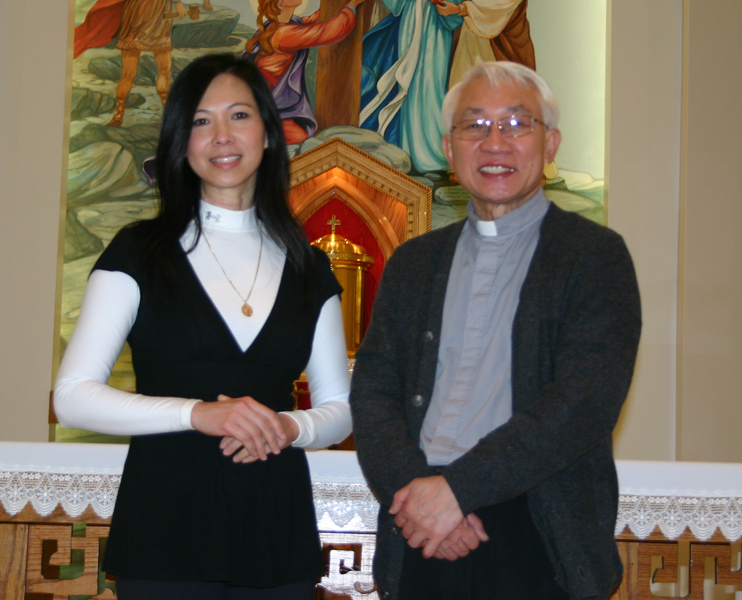 KEARNS —Theresa Nguyen received the Madeleine Medal of Appreciation for Faithful Service from her pastor, Father Dominic Thuy Dang Ha of Our Lady of Perpetual Help Parish, during the dedication Mass of the newly renovated church in December. The Madeleine Medal of Appreciation for Faithful Service is a new award in the Diocese of Salt Lake City. It was created by Vicar General Monsignor Colin F. Bircumshaw in response to a need expressed by several pastors for such an award, he said. The award honors a person or married couple annually from a parish or diocesan institution who has exemplified faithful service to the parish or community over many years. Nguyen has given exceptional and outstanding service to Our Lady of Perpetual Help Parish since 1994, said Fr. Thuy. "She is appreciated not only by me, but the whole parish," he said. "She knows a lot about all of the ministries in the church and helps with all of them, besides doing her bookkeeping and secretarial jobs. She helps plan religious education and many projects and also helped with the architectural design and purchasing for the renovation of the church. She works very well with the parish council and she knows the people in the parish. She has a gift from God and she gives it to the parish." Nguyen said she was surprised to be honored with the award. "The award is not just for me, so I leave the medal here to share with the community," she said. "Father is such a great shepherd and we just follow him." "We really surprised her," said Fr. Thuy, adding that Nguyen had to be called from the kitchen, where she was preparing food for the reception, to receive the award from the Most Rev. John C. Wester, Bishop of Salt Lake City, after the Dec. 16 dedication Mass. "I danced and was the choreographer for the liturgical dancers during the Mass and when I went to the podium I had been making a salad and had five burners going on the stove," Nguyen said. "My mind was on the kitchen and I wasn’t concentrating on what was said." Nguyen is the parish’s full-time accountant, and also coordinates the youth group, special events, fundraising projects, the Diocesan Development Drive, and volunteers wherever she is needed. "I treat this church like it’s my own family and I have so much love for it," she said. "If you have love for God, then it should be all the time, not just when you are available or healthy or you want to; you have to place God first. This work has taught me so much and has strengthened my faith, and my love for God." Nguyen grew up attending daily Mass until she was 11. The family left Vietnam in 1975 for a refugee camp, where she stayed with her mother and siblings for five months. Her father was already in the United States and found a sponsor for the other family members. They moved to Camp Pendleton in California and then to Springfield, Mo., for three years. "My mother died six months after we came to the United States," Nguyen said, adding that the family moved three years later to Denver to be near other relatives. "I moved to Utah in 1989 with my husband, who got a job at Hill Air Force Base," Nguyen said. "We started attending the Vietnamese Mass at Saint Patrick’s Parish and that is how I met Fr. Thuy." In 1993 Nguyen began helping Fr. Thuy with fundraising to start the Vietnamese parish. The building where the church is now located was purchased in 1994. That same year, Fr. Thuy celebrated his 10th year of ordination and asked Nguyen to "do the tiny task of coordinating the entertainment program for the dinner fundraiser for the church," she said, adding that she also emceed the event. "I had never done anything like that before, but it went well. At that time, the Vietnamese Mass was celebrated at Sacred Heart Parish. God was working through me and from that little task, I just kept going. As I look back, I say what a blessing it has been because we help bring the people and the youth closer to God and to the church by attending Mass."