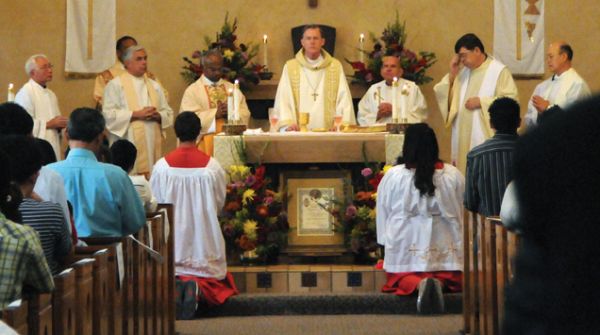 SALT LAKE CITY — En la parroquia católica de San Patricio se escucharon los ecos de los himnos y alabanzas en diferentes idiomas de una multitud de feligreses que se dieron cita para celebrar el 120 avo aniversario de la parroquia el 8 de septiembre. Esta parroquia siempre ha servido a los inmigrantes – el Reverendísimo Lawrence Scalan, primer Obispo de Salt Lake City la estableció en 1892 y en ese entonces servía a los irlandeses e italianos que se establecieron el en lado oeste de la ciudad. En 1930 la demografía de la parroquia cambió conforme los inmigrantes hispanos comenzaron a mudarse al área y la misión de italianos se separo de la parroquia como una entidad individual. El Reverendísimo John C. Wester 9evo y actual obispo de Salt Lake City, durante la Misa de aniversario, hizo notar que hoy en día, tonganos, africanos, coreanos, filipinos, hispanos y otras comunidades contribuyen en la parroquia. "Es muy evidente que somos más grandes que la suma de nuestras partes; que cuando nos reunimos creamos algo nuevo, y eso es lo que hoy hemos hecho", dijo el Obispo Wester. "Hemos dado las gracias a Dios por estos 120 años, hemos estado celebrando en el presente y esperando el futuro con esperanza. Son una parroquia maravillosa. Ustedes forman lo que una parroquia está destinada a ser – personas que se reúnen alrededor del altar del Señor; personas escuchando, disfrutando, apoyándose, celebrando en los buenos y en los malos tiempos. Esta es una maravillosa, verdaderamente maravillosa parroquia. Que regalo tan maravilloso oro para que el crecimiento continúe siendo el faro que nos da esperanza en nuestra diócesis". El Obispo Wester dijo que con su diversidad cultural la parroquia proyecta ‘un muy hermoso rostro de Cristo’. "Nos damos cuenta que todos reunidos formamos el Cuerpo de Cristo. No se excluye a nadie, y cuando esto sucede, entonces el Cuerpo de Cristo sufre, y Cristo no puede hacerse totalmente presente en el mundo ya que su iglesia se debilita. Cuando el prejuicio y la intolerancia y la avaricia y la perdición por el poder – cuando esas cosas están en las personas marginándolas y olvidándolas, entonces la Imagen de Cristo se daña. Ustedes mis queridos hermanos y hermanas, ofrecen una imagen completa vibrante y hermosa de Cristo". La misa fue concelebrada por el Padre Lourduraj Gally, Pastor de la parroquia, por Monseñor J. Terrance Fitzgerald, Vicario emérito, por Monseñor Colin F. Bircumshaw, Vicario General y por el Padre Jerome Kim, quien se encarga de celebrar la misa en coreano los domingos en la parroquia. Monseñor Bircumshaw sirvió como vicario parroquial en San Patricio de 1981-1982 y Monseñor Fitzgerald como su pastor de 1975-1982. Los diáconos Sefu Manu y Silvio Mayo apoyaron en la Misa; el diácono Mayo fue bautizado en la parroquia así como sirvió como diácono. El ministerio de música durante la misa de celebración fue ofrecido por el coro tongano, el coro africano y por el ensamble coreano. Después de la Misa durante la recepción, danzantes de las comunidades hispanas y tonganas entretuvieron a los asistentes, y una exhibición de Tae Kwon Do fue presentada por los coreanos. Anthony Martinez, miembro del comité de la parroquia dijo que la planeación de la celebración comenzó hace nueve meses. "El momento culminante fue la liturgia de hoy; el ver a todas las comunidades unidas. Todos estamos aquí por el mismo motivo – por amor a nuestro Dios y a nuestra Iglesia. Oramos en diferentes lenguas, pero siempre con amor a nuestro Dios". El Padre Gally se desvivió en halagos para Ron Menke, el pasado presidente del consejo parroquial, quien dio la idea de la celebración del 120 avo aniversario. "Tanto el como los anteriores y presentes miembros del consejo de la parroquia han contribuido para que el exterior de la parroquia pudiera ser pintado, para la historia de la parroquia, para la venta de artículos conmemorativos, para la ce-lebración de la Eucaristía y la cena", dijo el Padre Gally. La recepción realizada después de la misa fue una oportunidad para que la comunidad socializara. "Es importante que celebremos nuestra diversidad y nuestra religión", dijo Nita Tuli, feligrés de San Patricio. Nyangag Changath concordó. "Para mí es bueno ya que le puedo enseñar a mis hijos acerca de otras comunidades. Estoy muy contenta".