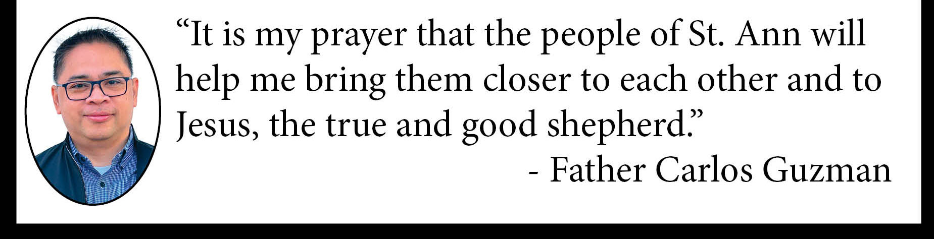 “I always believe that, though I have been a priest for several years, there will always be room for improvement and learning,” he said. “It is my prayer that the people of St. Ann will help me bring them closer to each other and to Jesus, the true and good shepherd.”