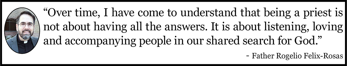 Speaking to his new parishioners, Fr. Rogelio said, “I’m excited to be here and look forward to getting to know each of you: your stories, your families, and your faith.”