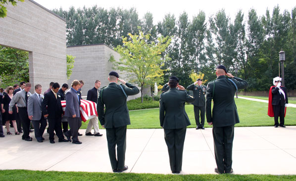 LAYTON — When PFC Daniel G. Dolan’s truck was hit in Baghdad, Iraq, destroyed by a roadside bomb, and his body returned to his parents, Tom and Fay Dolan of Roy, the family brought Dolan’s body to St. Rose of Lima Catholic Church in Layton for funeral rites. They didn’t approach Pastor Msgr. Victor Bonnell because they were Catholic or because Daniel was Catholic. They came, Msgr. Bonnell said, "because Daniel always wanted to be a Catholic," and "because he’d gone one step further – he’d begun taking classes in Iraq to become a Catholic." Daniel, less than a month before his 20th birthday, had achieved in death, "Baptism of Desire," said Msgr. Bonnell in a Sept. 9 interview with the Intermountain Catholic. "Daniel wasn’t raised in any faith," Msgr. Bonnell said. "His father is a non-practicing Catholic and his mother is a non-practicing Seventh-day Adventist. Everyone said that Dan was always a nice, pleasant young man who showed natural goodness. I don’t know what drew him to Catholicism, but he did take the next step, and he did it while facing several obstacles. He was in the Army and he was in a foreign country." Mourners entering St. Rose of Lima Church for Dolan’s funeral couldn’t help but see the teddy bear holding a small American flag sitting on the edge of the baptismal font. It was a tribute to Dolan, little more than a boy, who’d given his life in the service of his country. Outside, jets from Hill Air Force Base flew over the church as a flag was removed from his gray casket and the white pall, the traditional symbol of Catholic baptism replaced it. The church was nearly full. Many of Dolan’s high school friends and teachers were there. Members of St. Rose of Lima Parish were there, and the full parish choir, led by Alfonso Tenreiro, was there, even though it was a week day. Two members of the choir wore the uniforms of the United States Air Force. The parish’s Knights of Columbus showed up in force, standing in line beside the military honor guard. "There were many non-Catholics there," Msgr. Bonnell said. "But when members of the parish, the choir, the ushers, and the knights heard about Dan, they came, too. It was remarkable. Dolan’s family chose the readings from the Book of Wisdom and from Paul’s First Letter to the Thessalonians. The words were filled with consolation and hope. The Gospel was from St. John, Chapter 14: "Do not let your hearts be troubled. You have faith in God; have faith also in me." Msgr. Bonnell said the readings were most appropriate for Dolan’s funeral, and he invited all present to, "leave the noise and the busyness and the control; the strident claims and the demonstrations outside, and come into the church to pray and talk to God from the fullness of your hearts." He explained the multiple reasons for Catholic funeral liturgies: to worship God, to pray for the repose of Dolan’s soul, and to offer comfort and support to his family and friends. "When Dan went off to war, he prayed for a safe return," Msgr. Bonnell said. "He was aware of the dangers... and a terrible act of war put an end to his life. We know from those who were with him that he acted bravely, even after he was hurt." Remember that a short life is better than no life, and that to be born is to share in God’s eternal life, said Msgr. Bonnell. He recalled that a friend of Dan’s had said Dan lived life well and lived each day well. "Tomorrow is not guarantee. Jesus gave his life on the cross for us. He taught us that each life is precious, and he gave his life so all may be redeemed." Msgr. Bonnell said Dolan "gave his life for his country and for all of us. In his short life, he was a winner." A heavy cross remains on the shoulder’s of Dolan’s family, but they have the knowledge that Dan "gained peace in the kingdom," Msgr. Bonnell said. At the close of Mass, Msgr. Bonnell spoke of the importance of water as a symbol of baptism, "the baptism he was striving for," before sprinkling Dolan’s casket with holy water. Dolan joined the U.S. Army Sept. 22, 2005, and completed basic training in Fort Benning, Ga. In January 2006 he was stationed at Fort Lewis, Wash, assigned to 1/23 INF 3-2 Stryker Brigade Combat Team Tomahawks. His unit was deployed to Iraq June 28. Dolan enjoyed hockey, playing for the Golden Spike Hockey Association, Roy High School, the Utah Stars, and the Northern Utah Independent High School Hockey Team. He also enjoyed snowboarding, baseball, and cars. Dolan is survived by his parents and a sister, Michelle Lynn, of Roy; a grandfather, John H. Andrus, Layton; aunts and uncles, Alice (Mike) Hayden, Hamburg, N.Y., Mary Dolan, Bernard Dolan, Maureen (George) Vegas, and Thomas (Cheri) Dolan, all of Buffalo, N.Y., Lori (Mike) Harrington, Orchard Park, N.Y., Raylene (Ed) Corgiat, Lake Clear, N.Y., Darlene (David) West, South Jordan, Diana (Earle) Roberts, England, Paul (Marla) Andrus, Helena, Mont., Timmy Andrus, Layton, Jim Andrus, Fruit Heights, and numerous cousins. He was preceded in death by his grandparents, Leo F., Dolan Sr., and Marilyn I. Dolan, Annie W. Andrus and three uncles. There was a memorial service Sept 7 at 8 p.m. at Lindquist’s Roy Chapel with Chaplain LtC. Brent Jones officiating. Interment was at Roy City Cemetery with full military honors. Dolan’s family had the following poem read at his memorial service, printed in his obituary, and printed on his funeral program: "It is the soldier, not the reporter who preserves the freedom of the press. And it is the soldier, not the poet who protects of freedom of speech. It is the soldier, not the campus organizer who puts his life on the line to give others the freedom to demonstrate. And it is the soldier who salutes the flag, who served beneath the flag, and whose coffin is draped by the flag, who protects the protesters’ right to burn the flag. Freedom is never free. Father Dennis O’Brien, USMC In lieu of flowers, please send donations in the name of PFC